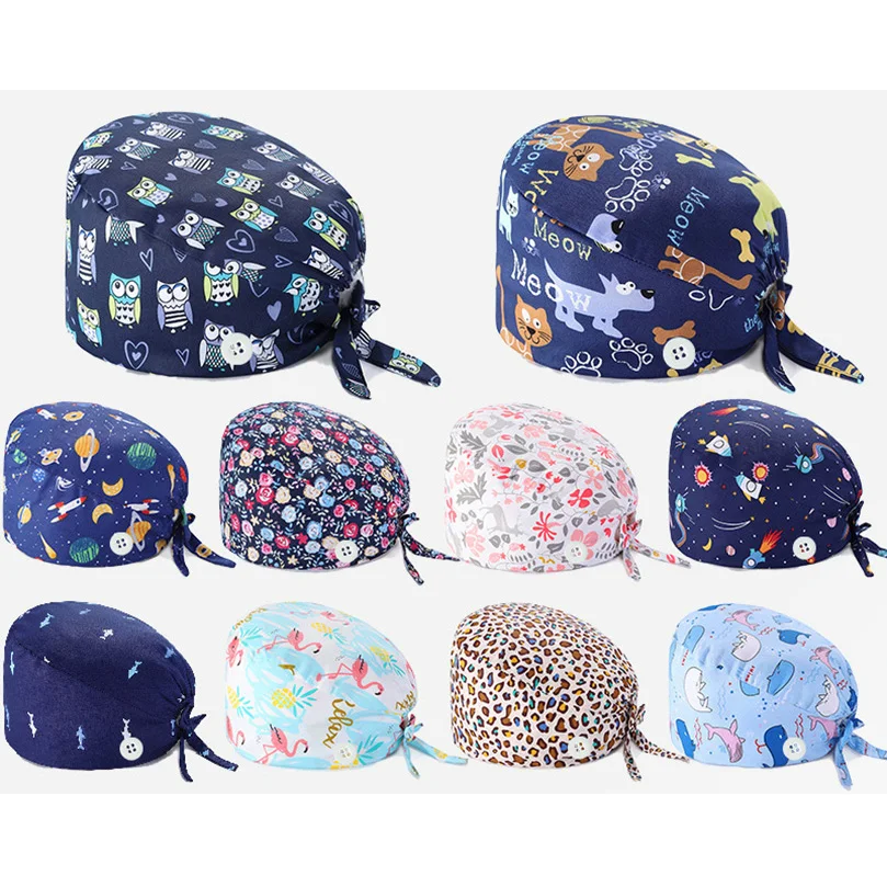 Дышащая хирургическая шапка в виде животных, шапка медицинского скраба, шапка для врача, медсестры, шапка с кнопкой, шапки для медсестры, аксессуары для женщин