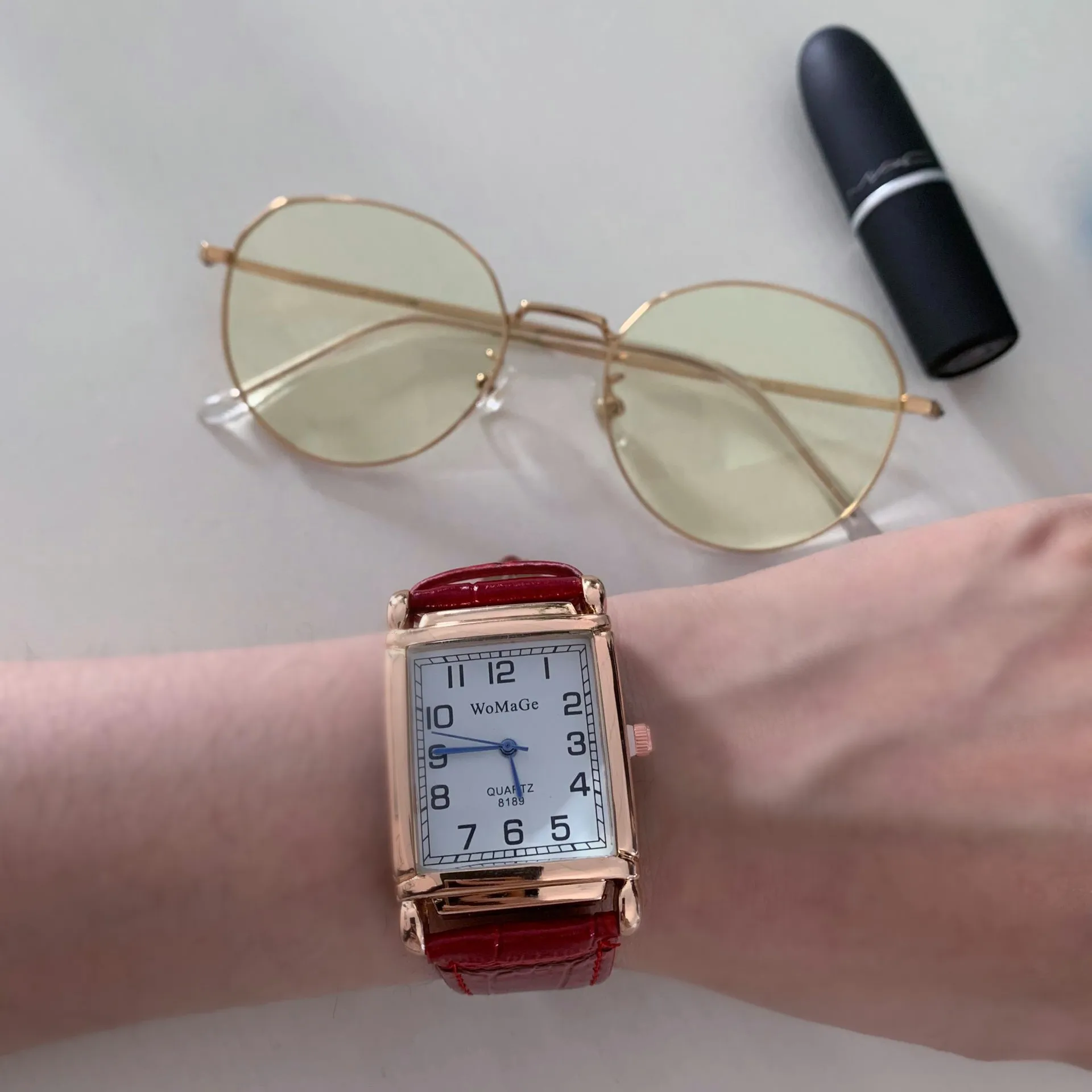 Часы наручные женские кварцевые под розовое золото с кожаным ремешком