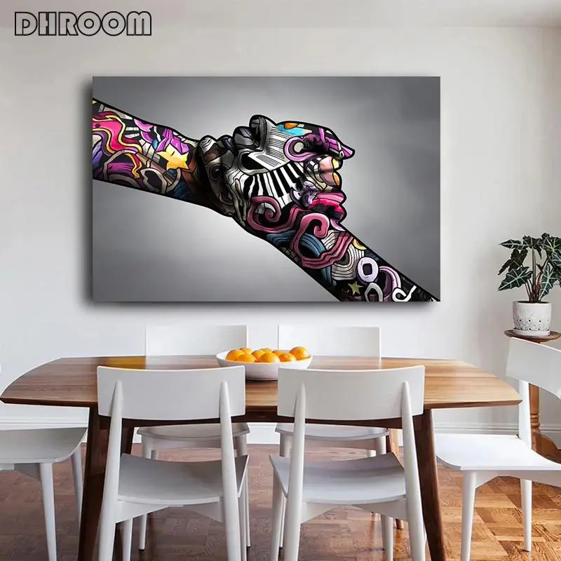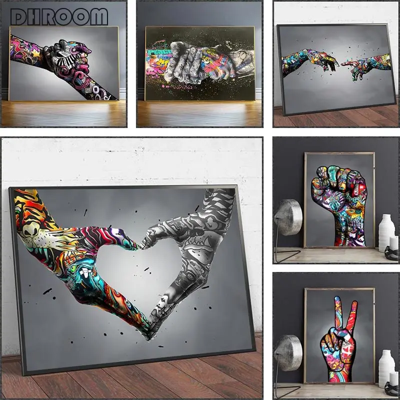 Уличная Картина граффити на холсте поцелуй руки настенные постеры и...