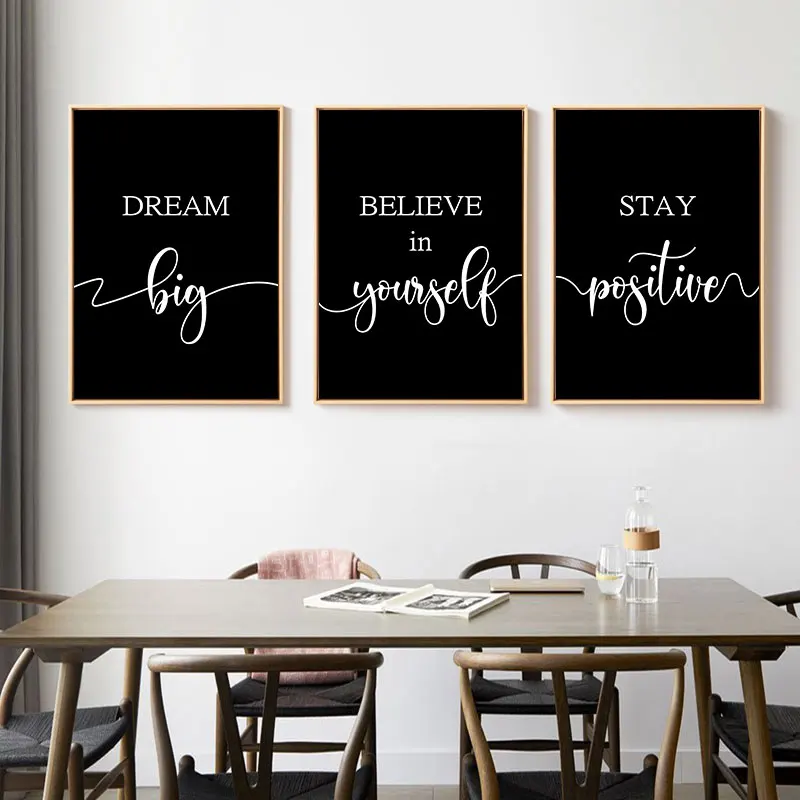 Черная Минималистичная вдохновляющая картина с цитатами на холсте, современные настенные декоративные Плакаты для гостиной, офиса, художественная картина, украшение для дома