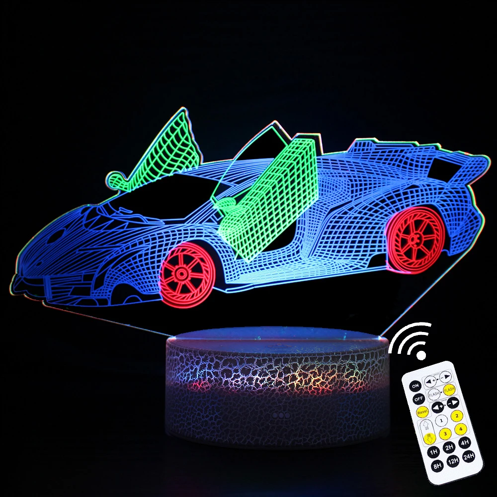 3D Автомобильная акриловая настольная лампа, красочная фотолампа, декор комнаты, сенсорный пульт дистанционного управления, таймер, ночники, праздничный подарок