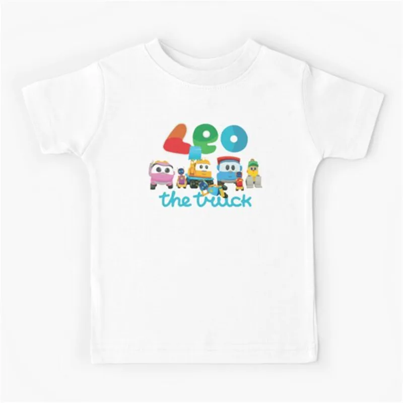 Детская футболка с принтом Лео из грузовика, новая летняя детская футболка с коротким рукавом, мультяшная футболка в стиле Харадзюку, Милая футболка для девочек и мальчиков, топ, футболка