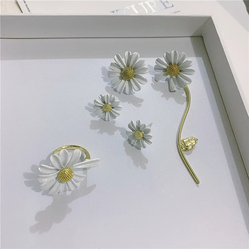 Женские асимметричные серьги в виде подсолнуха, новые летние серьги-гвоздики с цветочным принтом маргаритки, 2 вида