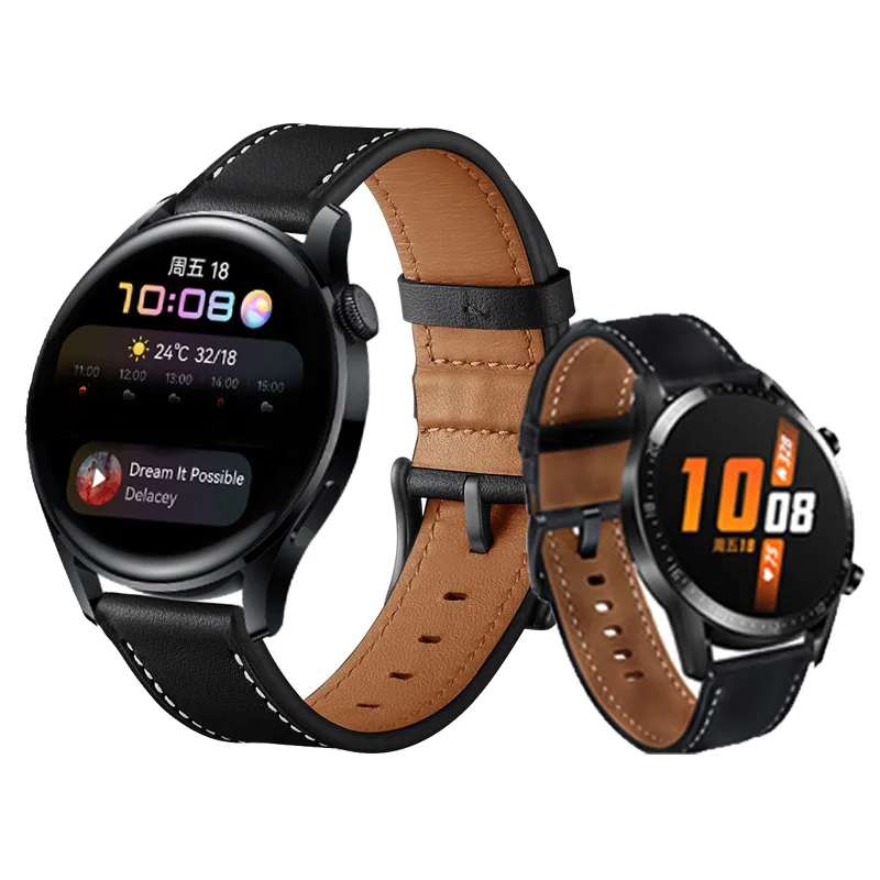 Кожаный браслет для Huawei Watch GT 2e 2 3 Pro 42 мм 46 мм, ремешок для часов из нержавеющей стали