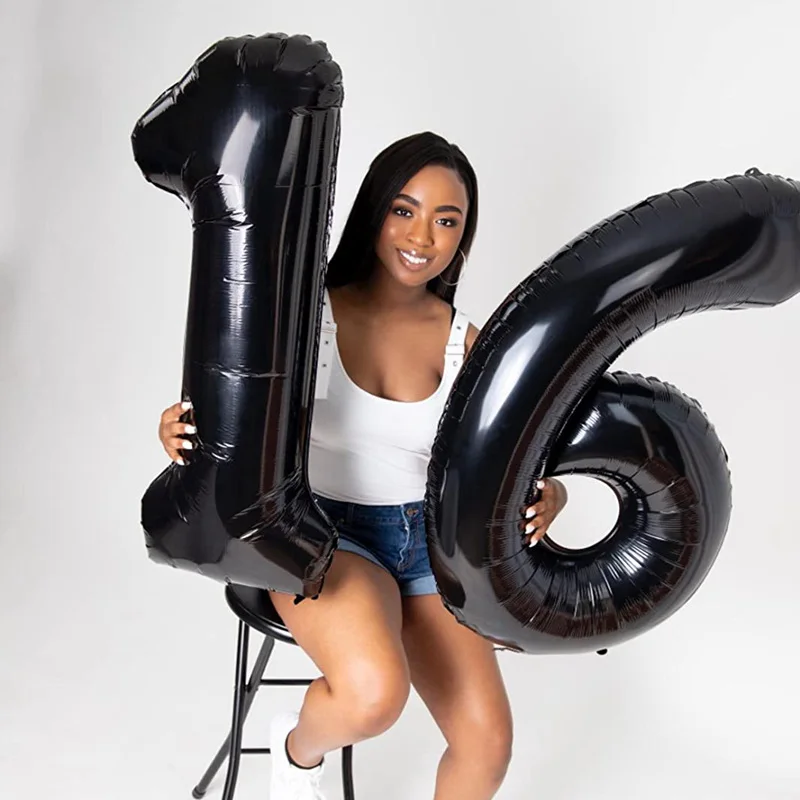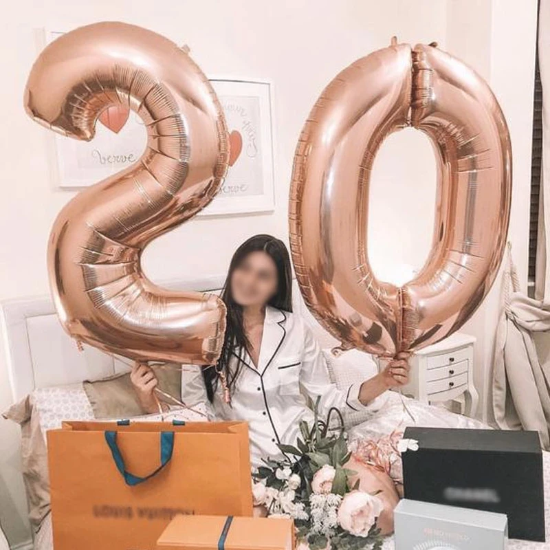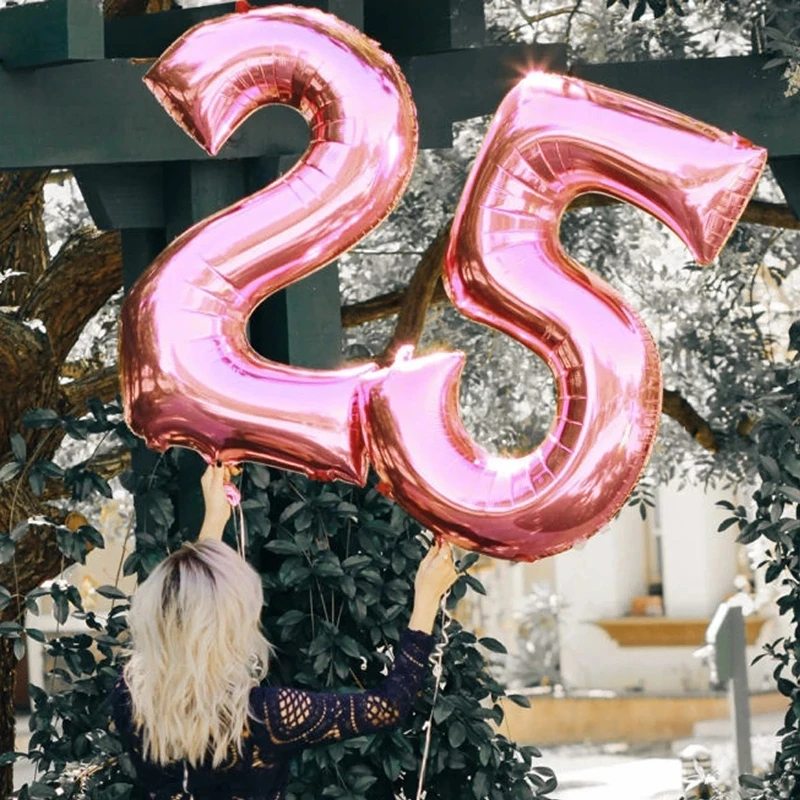 32-дюймовые цифры-шары, большие розовые, золотые, серебряные, черны...