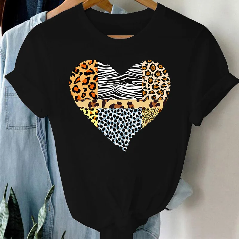 Женские Летние повседневные футболки с мультяшным принтом сердца, м...