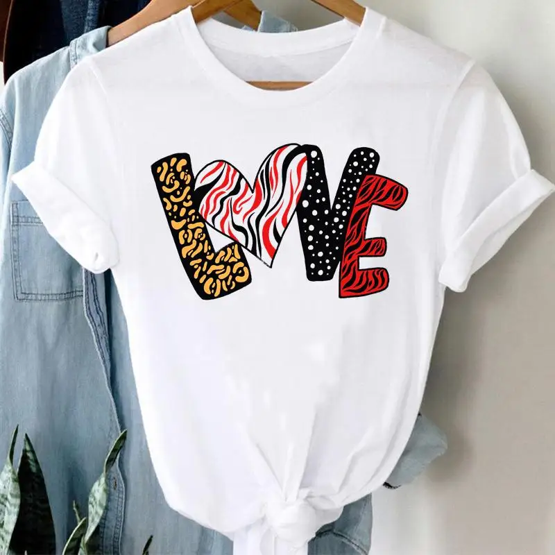 Одежда для женщин с принтом сердца, летняя простая базовая одежда с...