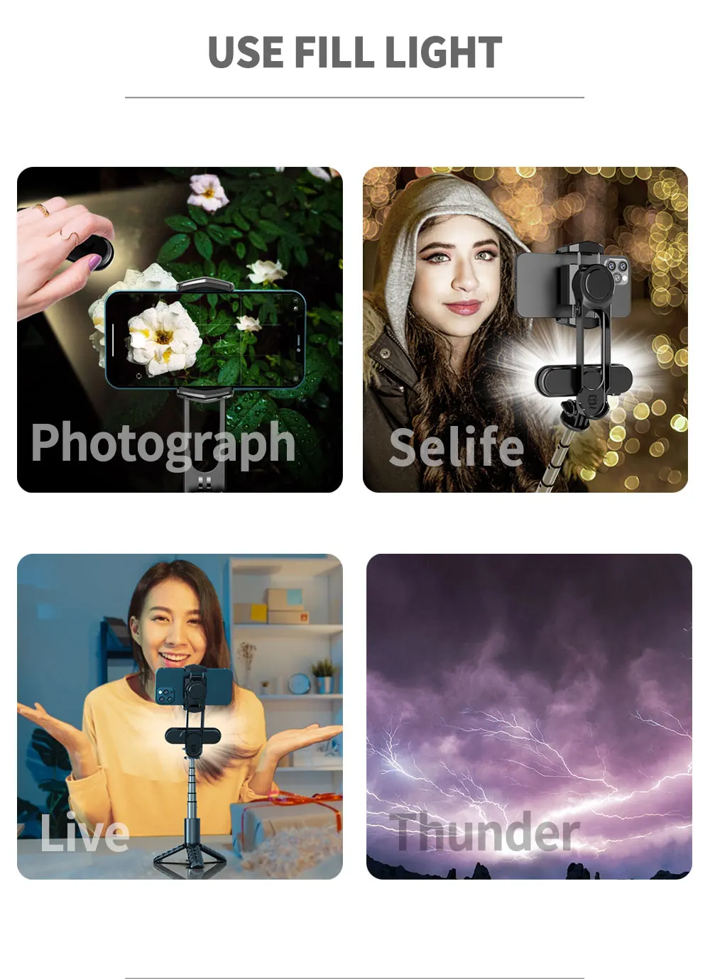 Ручной карданный стабилизатор, мини селфи-палка, штатив светильник кой, беспроводной пульт дистанционного управления, Портативный Телескопический штатив для телефона, подставка-держатель