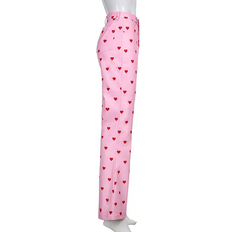 Женские розовые брюки IAMSURE с принтом в форме сердца, 2020, милые...