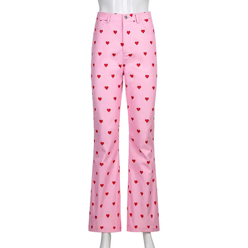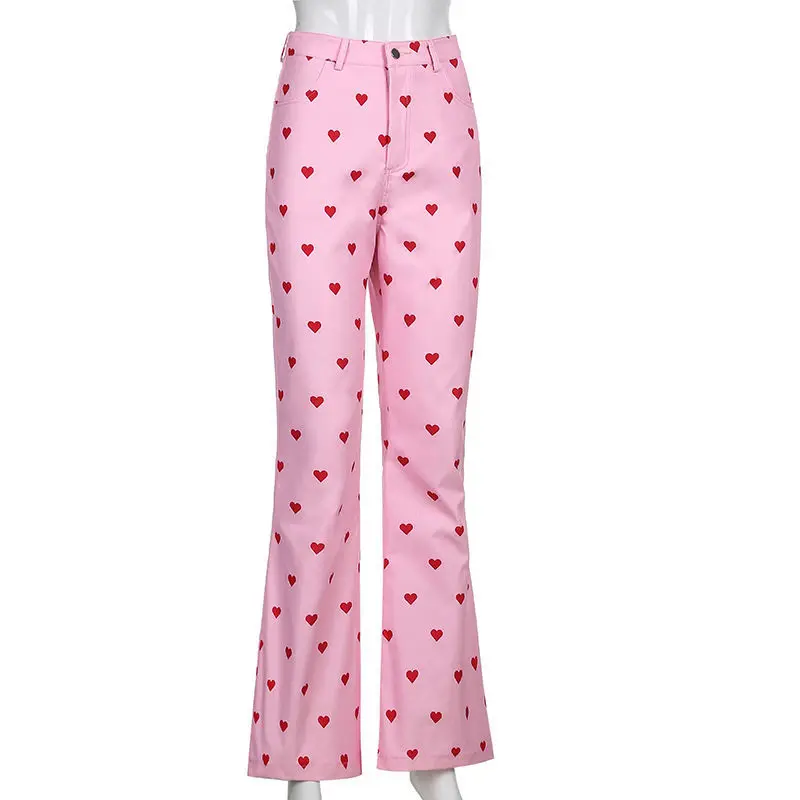 Брюки клеш Женские, с высокой талией, с принтом в виде сердца