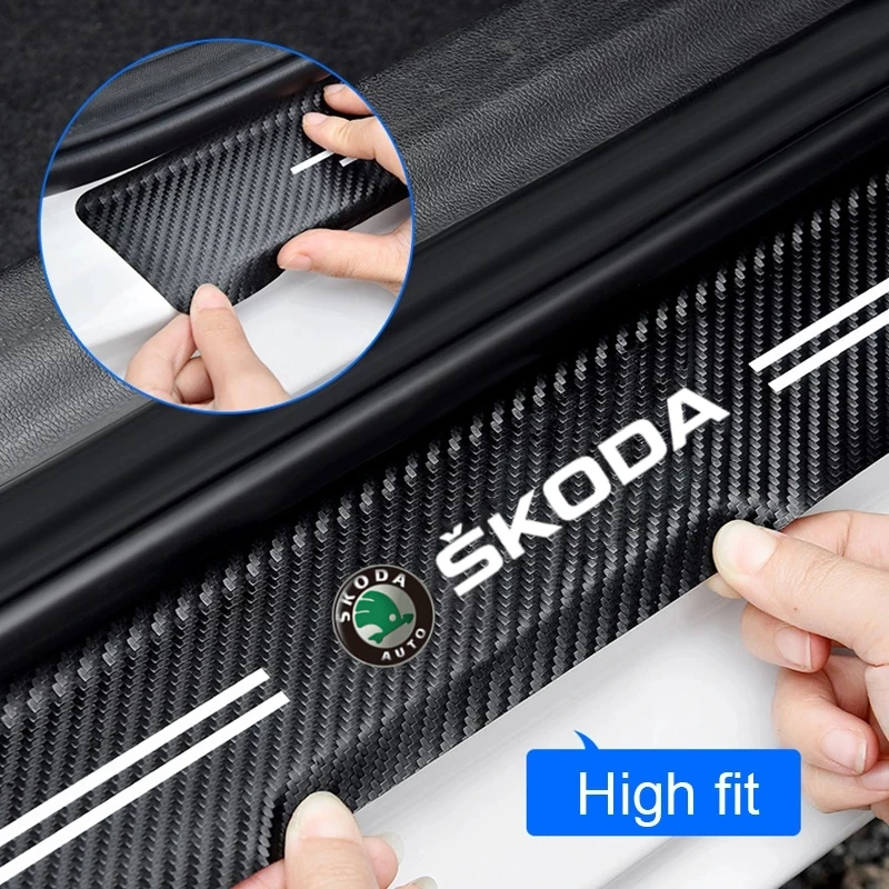 4 шт. Автомобильная наклейка на порог из углеродного волокна для JE...