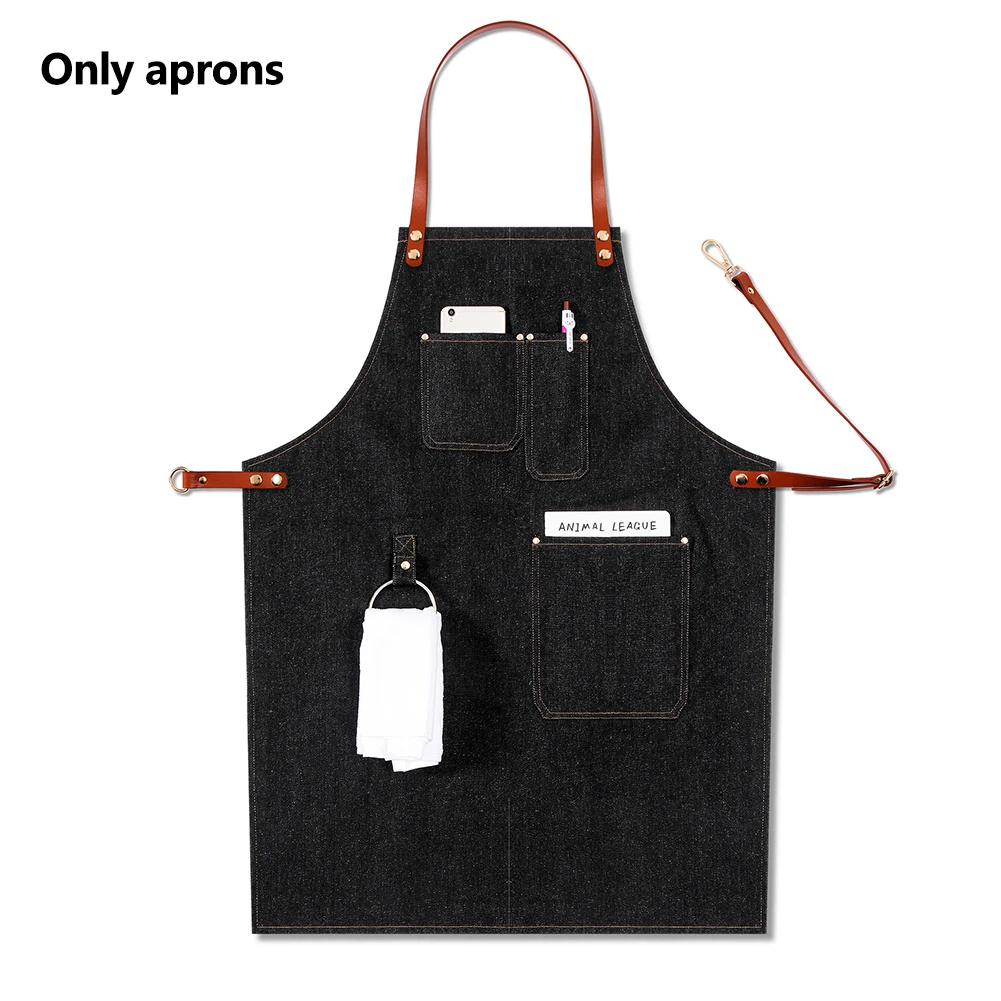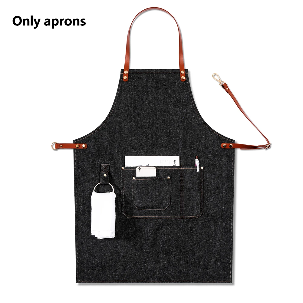 Фартук для барбекю, повседневный съемный кожаный нагрудник из денима, для барбекю, для шеф-повара, с несколькими карманами
