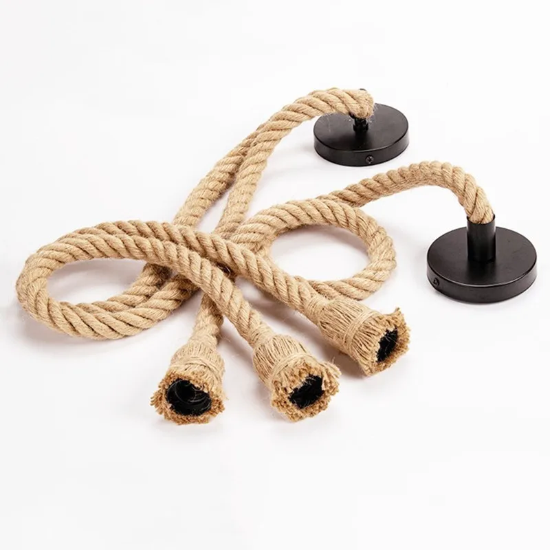 Светодиодные подвесные светильники в скандинавском стиле ретро, подвесной светильник из пеньковой веревки, комнатный подвесной светильник E27, сменный светильник для кухни, спальни