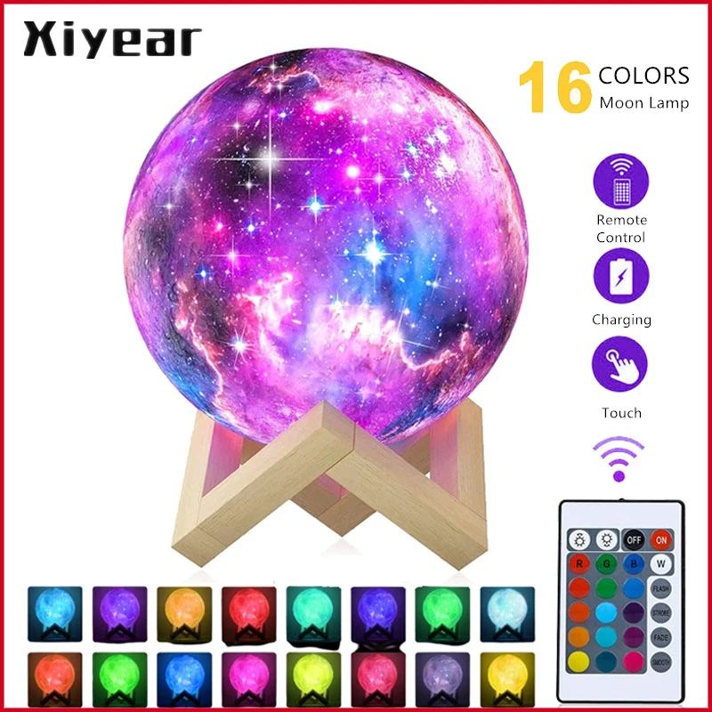 светодиодная лампЛампа в виде Луны с 3D рисунком Галактики, светиль...