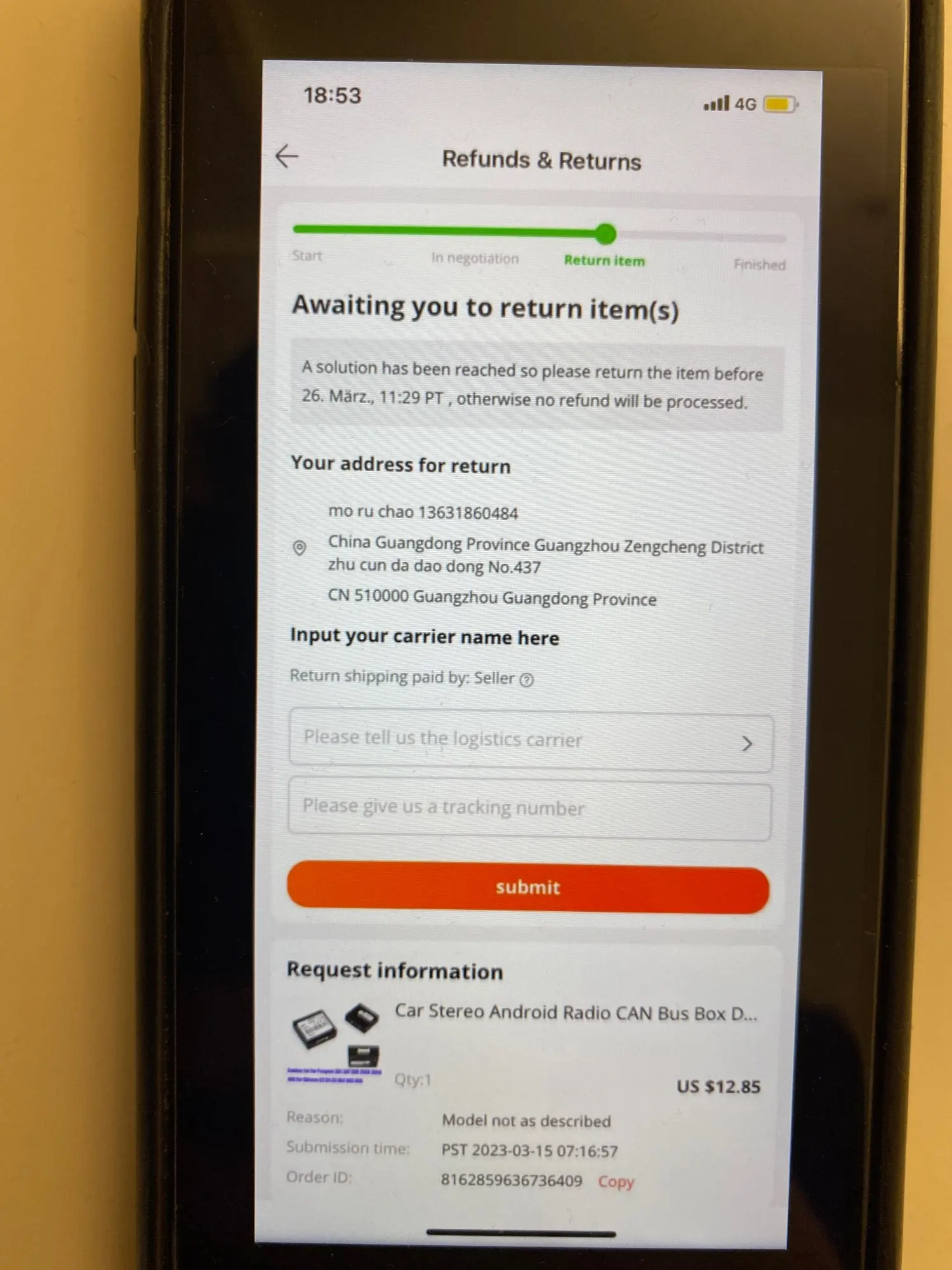 Товар доставлен быстро, отличается только от купленной модели.