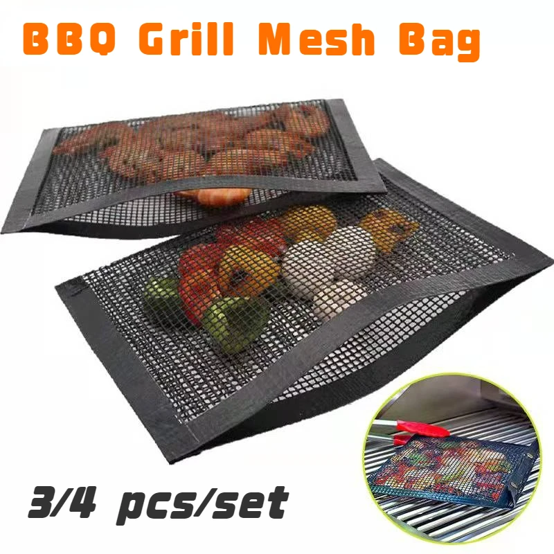 Сетчатая Сумка для барбекю и гриля, 34 шт.комплект, антипригарная многоразовая термостойкая сетка Easyclean, аксессуары для барбекю, инструменты для пикника и кемпинга на открытом воздухе