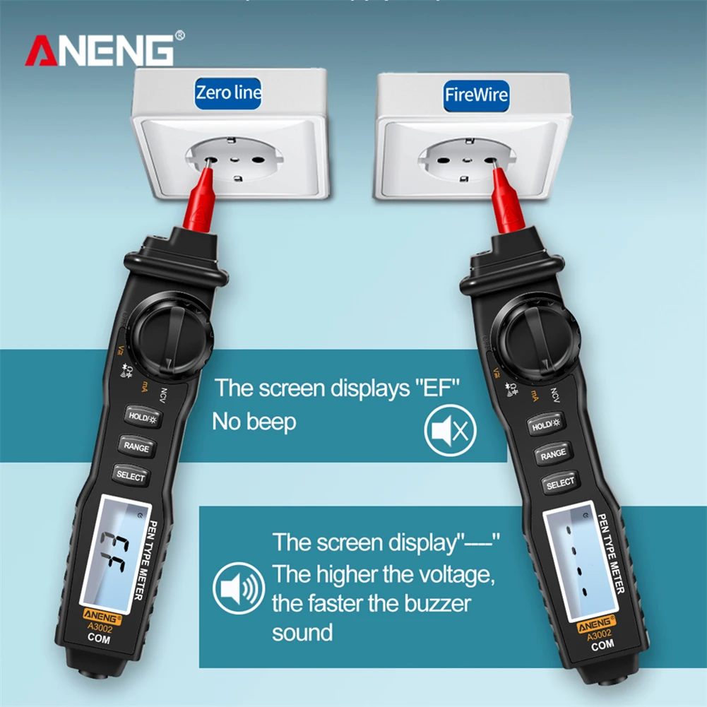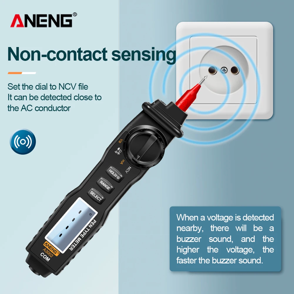 Цифровой мультиметр ANENG A3002 в виде ручки, 4000 отсчетов с бесконтактным тестером напряжения переменногопостоянного тока сопротивления диода непрерывности, инструмент