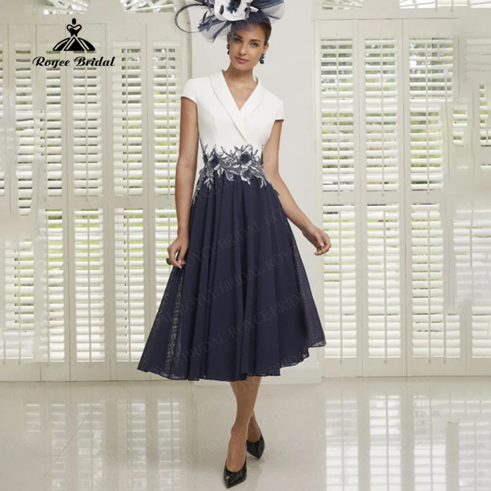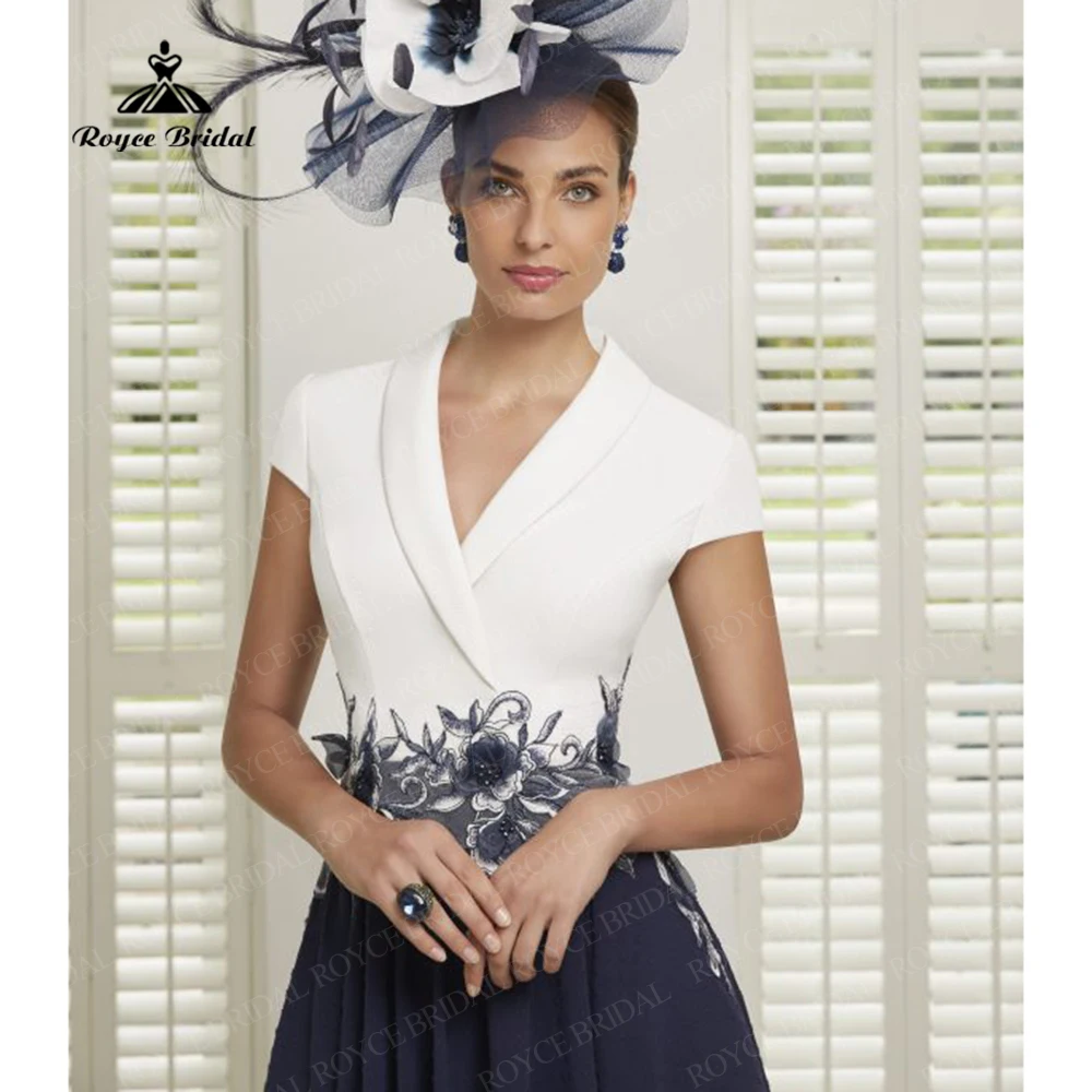 Платье для матери невесты, классическое ТРАПЕЦИЕВИДНОЕ ПЛАТЬЕ С Рукавом-крылышком и V-образным вырезом, платье для гостей свадьбы, аппликация