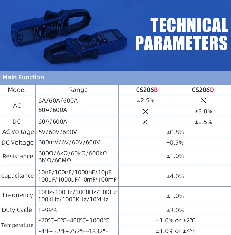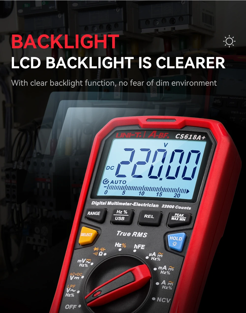 Цифровой мультиметр-зажим, автоматический измеритель диапазона, высокая точность, четыре с половиной trueRMS NCV, подсветка, передача данных о температуре