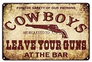 Cowboys Оставьте свое оружие жестяной настенный знак предупреПредупреждение знак железная Живопись Искусство Декор для дома кафе сада паба