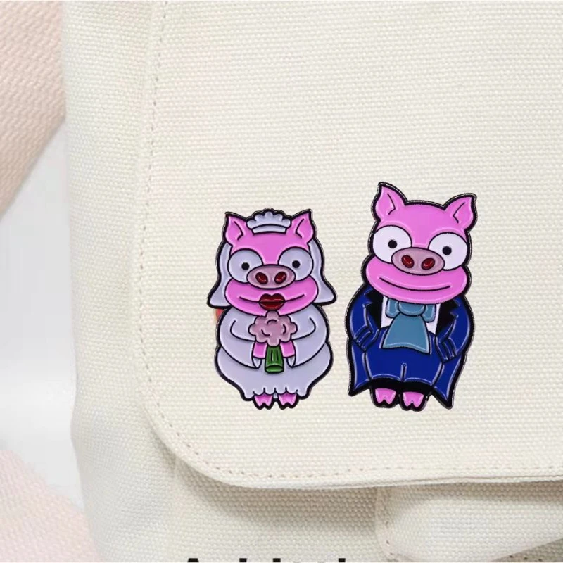 Милые Симпсоны эмалированная заколка свинка жениха невесты парные Броши Симпсоны Лиза Свадебный значок аксессуары для друзей искусственный подарок