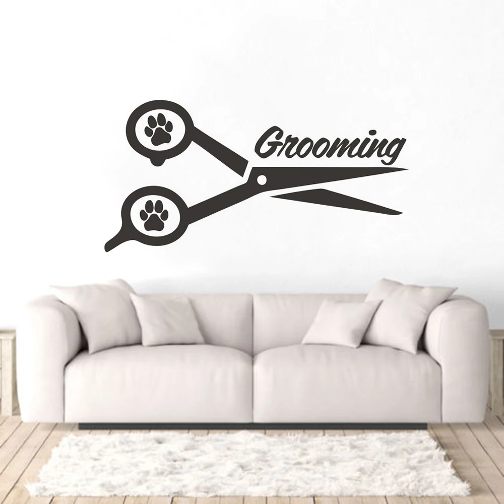 Стикер на стену домашние лапы искусство Pet Ging салон окна собаки кошки ножницы для салона красоты переводная наклейка Съемная виниловая настенная Фреска Декор наклейки