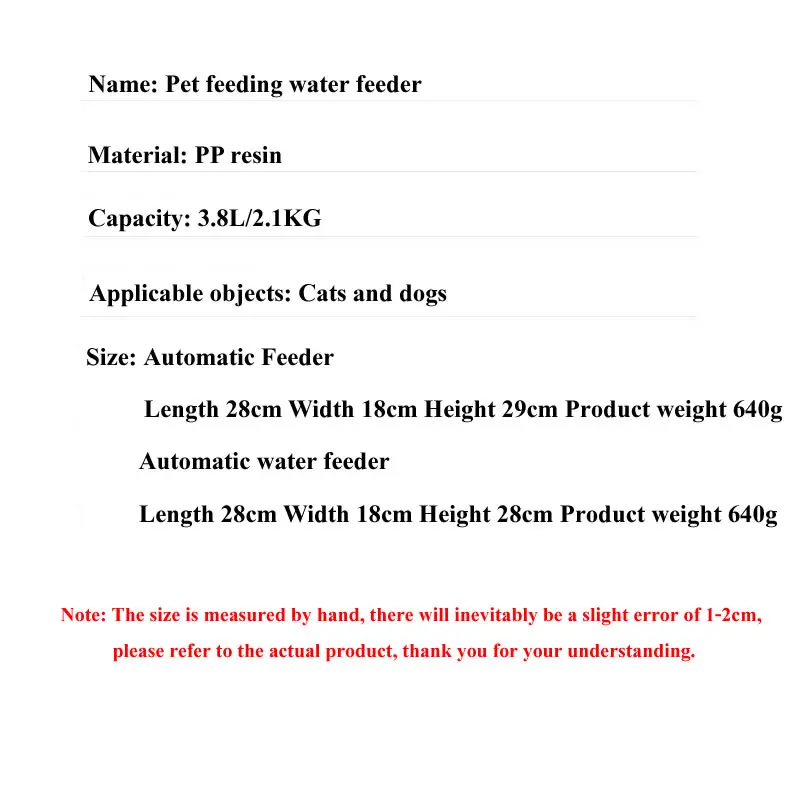Автоматическая кормушка для воды: 28*15*28 см-загружаемый Емкость: 3,8 л (воды)
