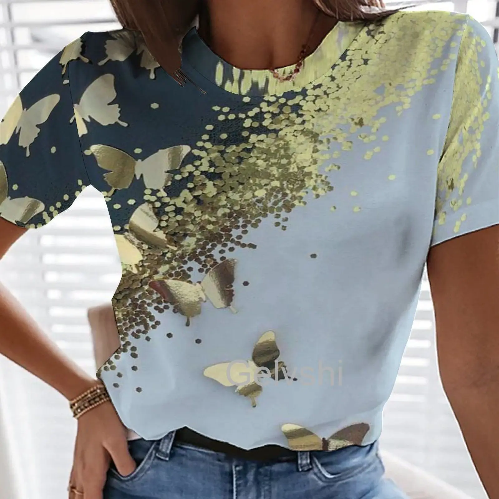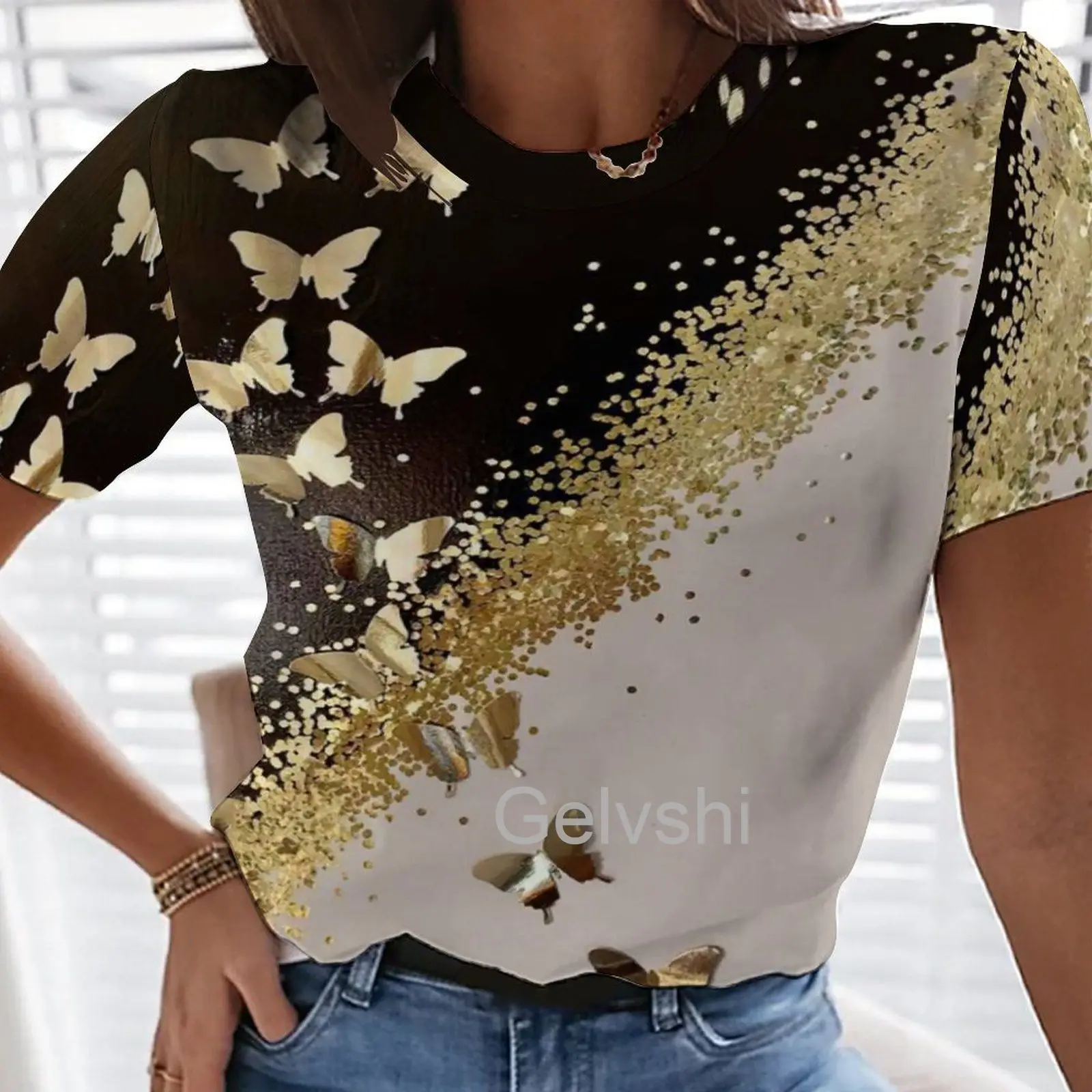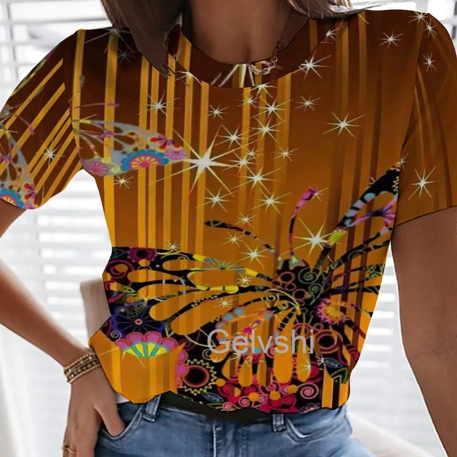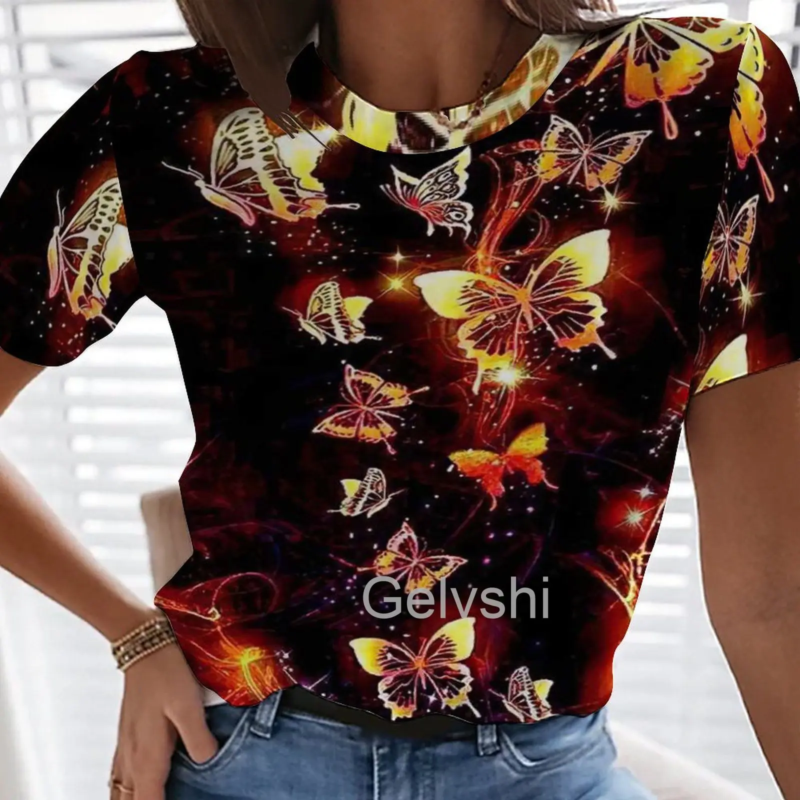Женские блестящие футболки с 3D-принтом бабочки, футболка большого размера с коротким рукавом и круглым вырезом, y2k, городские женские футболки, топы