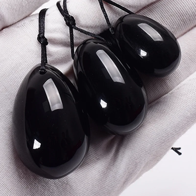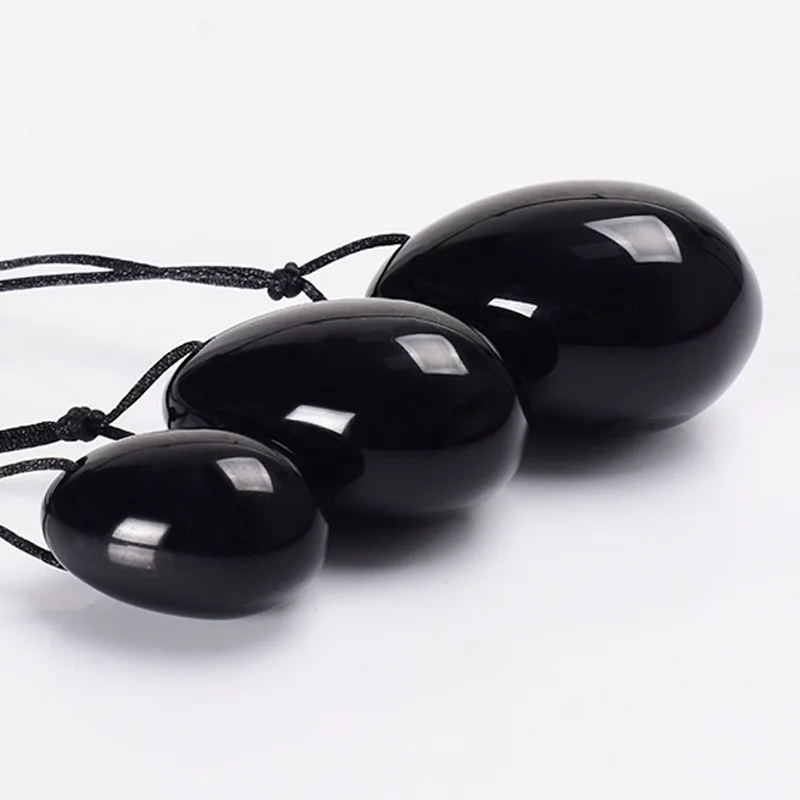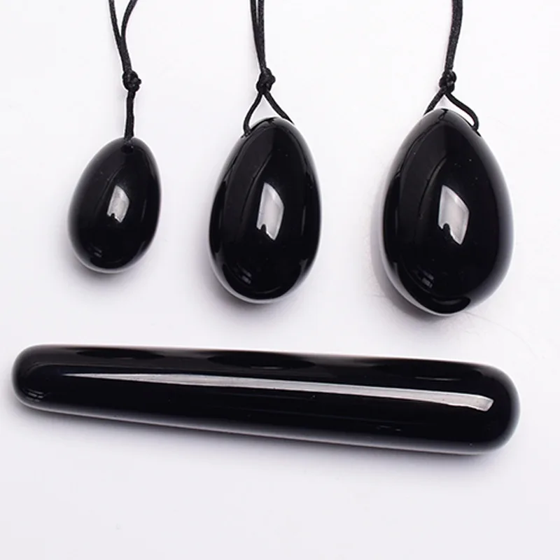 Натуральный черный обсидиан Yoni набор яиц для массажа, массажная палочка, Женский вагинальный тренажер для мышц, Нефритовый яйцо, массажер для тела, Хрустальные шарики Кегеля, подарок