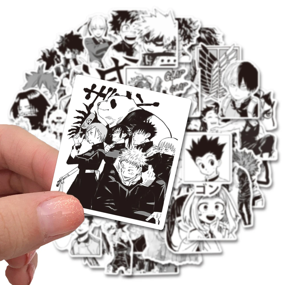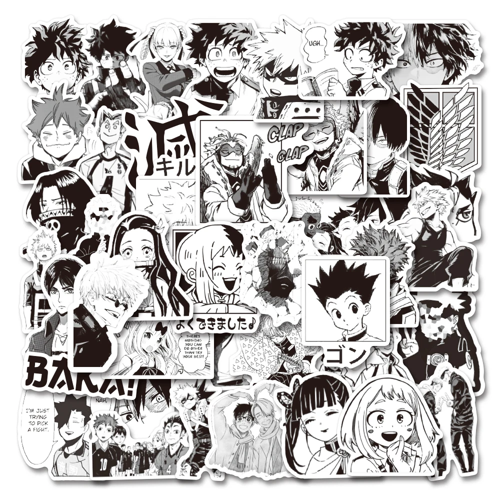 Черно-белые аниме наклейки граффити для ноутбука, гитары, скейтборда, велосипеда, Мультяшные смешанные фигурки, DIY наклейки, 103050 шт.
