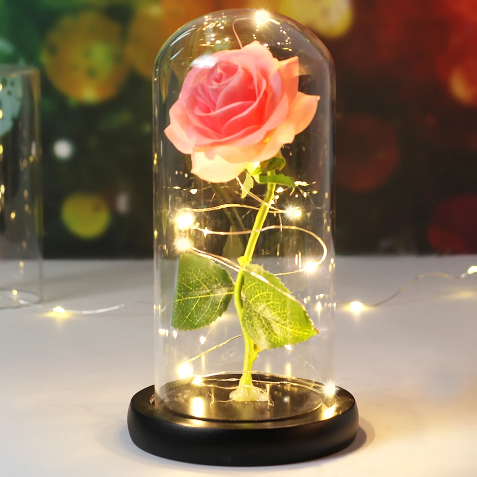 Новинка 2022, зачарованная Красавица и чудовище, роза с черной основой, светодиодный светильник в стеклянном куполе, подарок на день Святого Валентина, Рождество, свадьбу