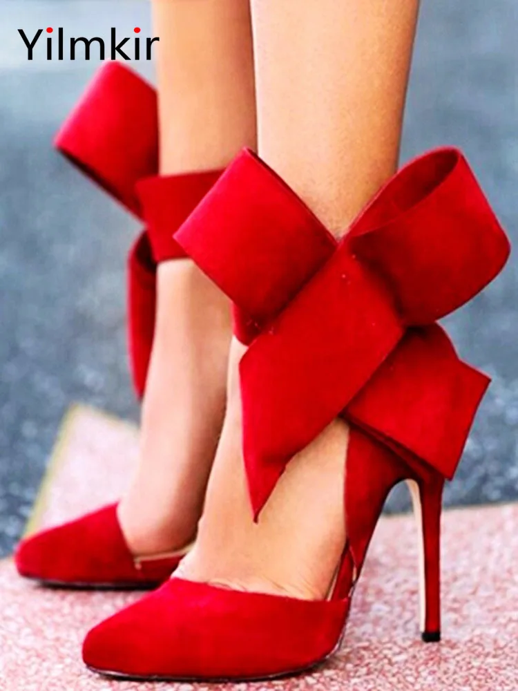 Женские туфли-лодочки с бантом, на высоком каблуке, с вырезами по б...