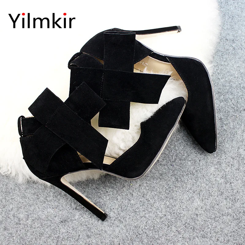 Женские сапоги на молнии с перекрестной шнуровкой, черные сандалии-...
