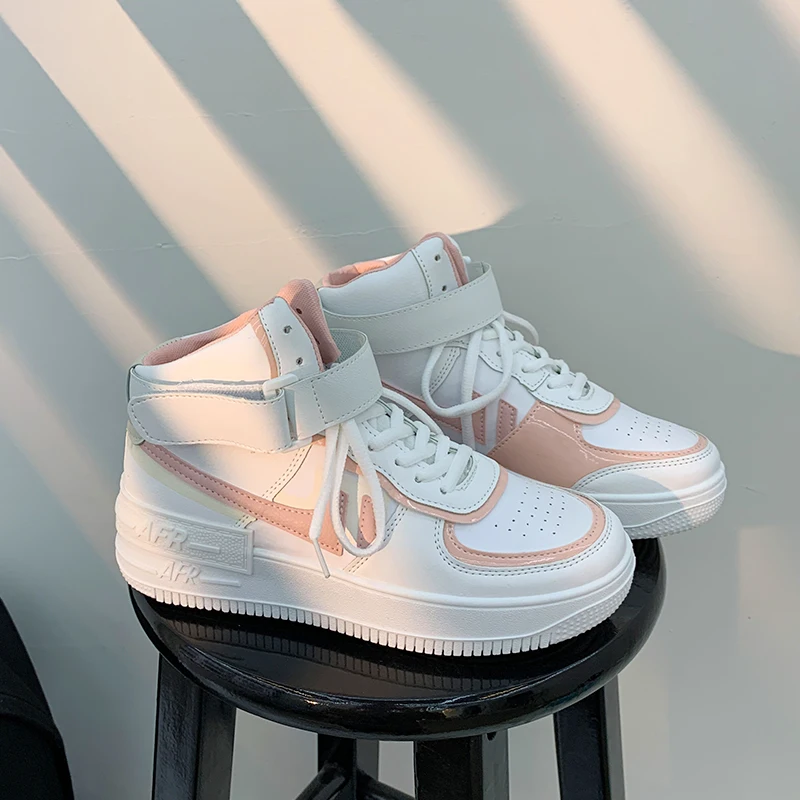 Кроссовки женские высокие из ПУ кожи, повседневная обувь на увеличенной платформе, Вулканизированная подошва, парные