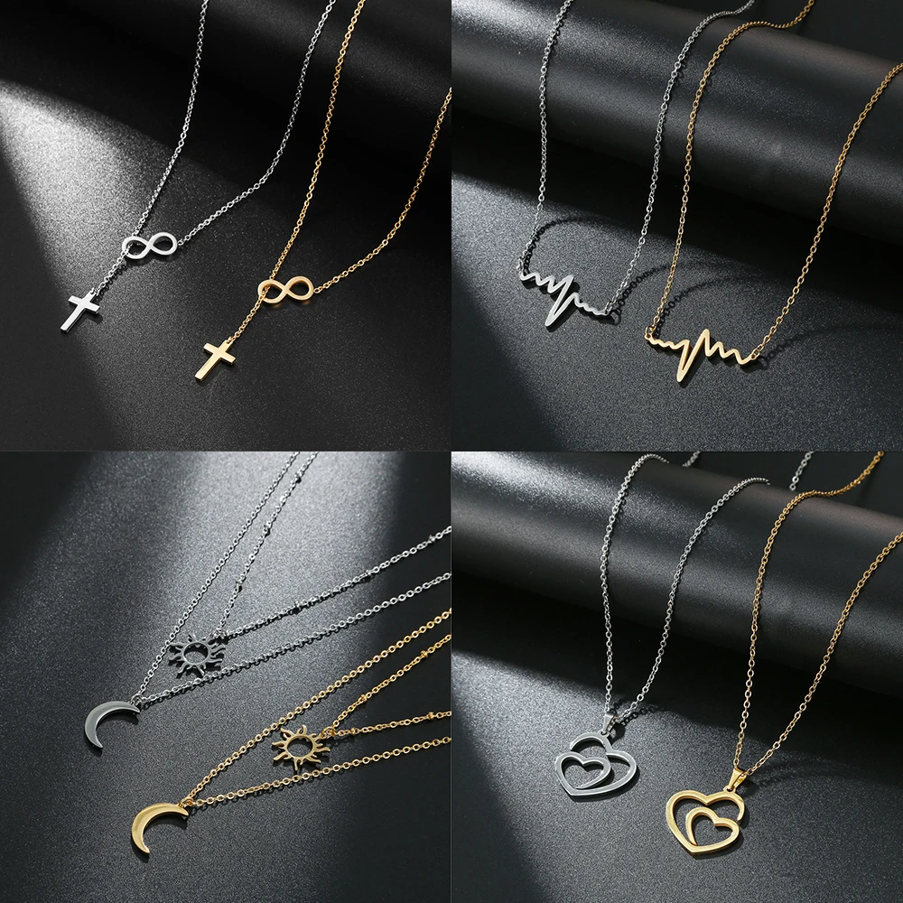 Ожерелья из нержавеющей стали, минималистичное геометрическое ожерелье-цепочка в форме сердца, Креста, бесконечного искусства для женщин, Ювелирное Украшение на воротник