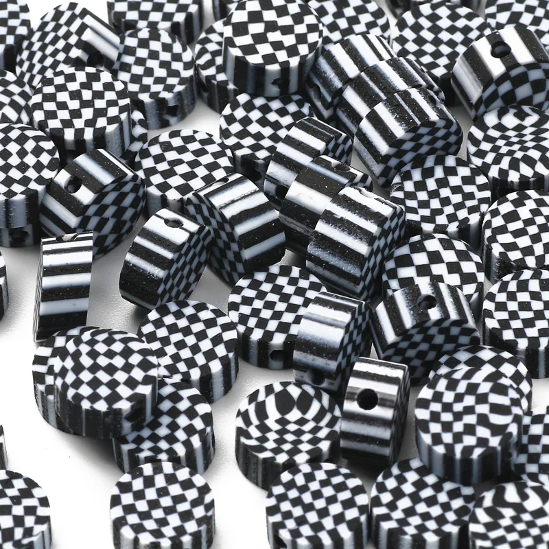 Круглые черно-белые клетчатые бусины из полимерной глины, бусины с ...