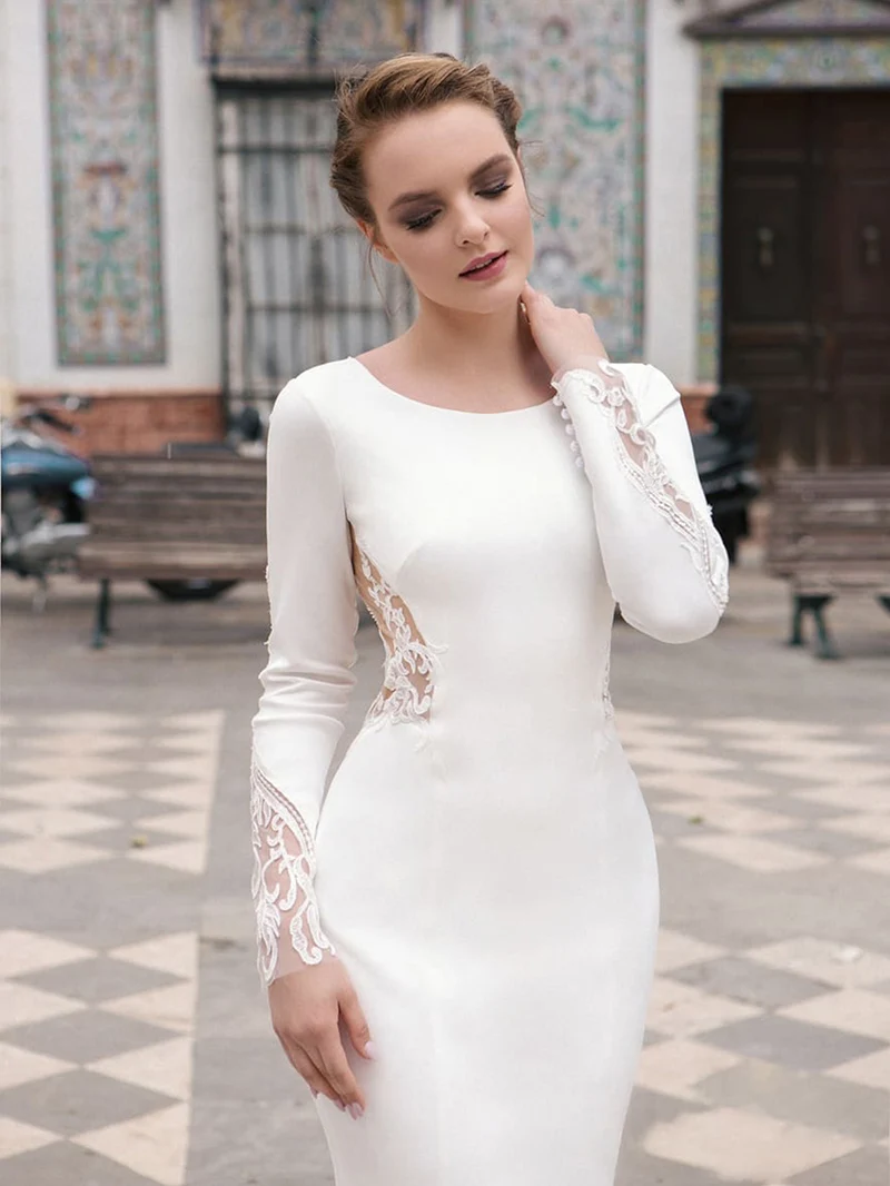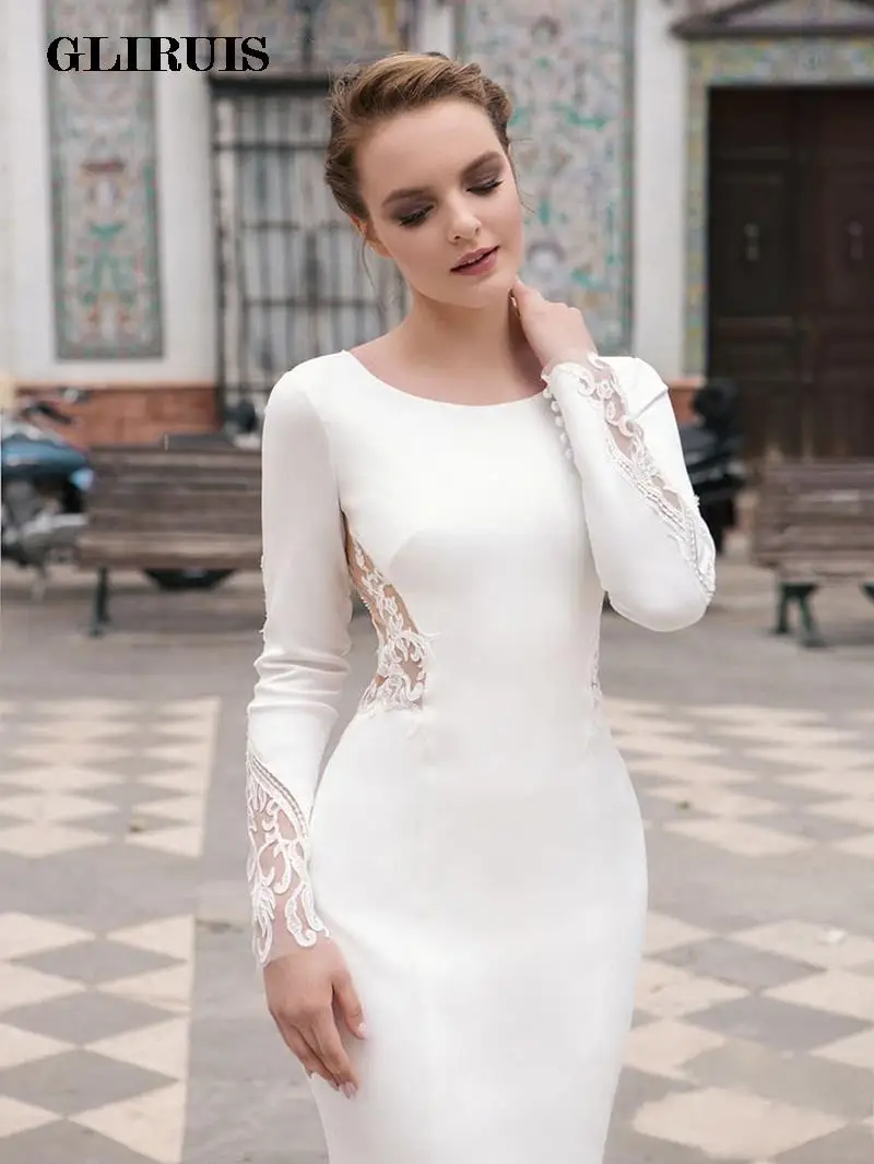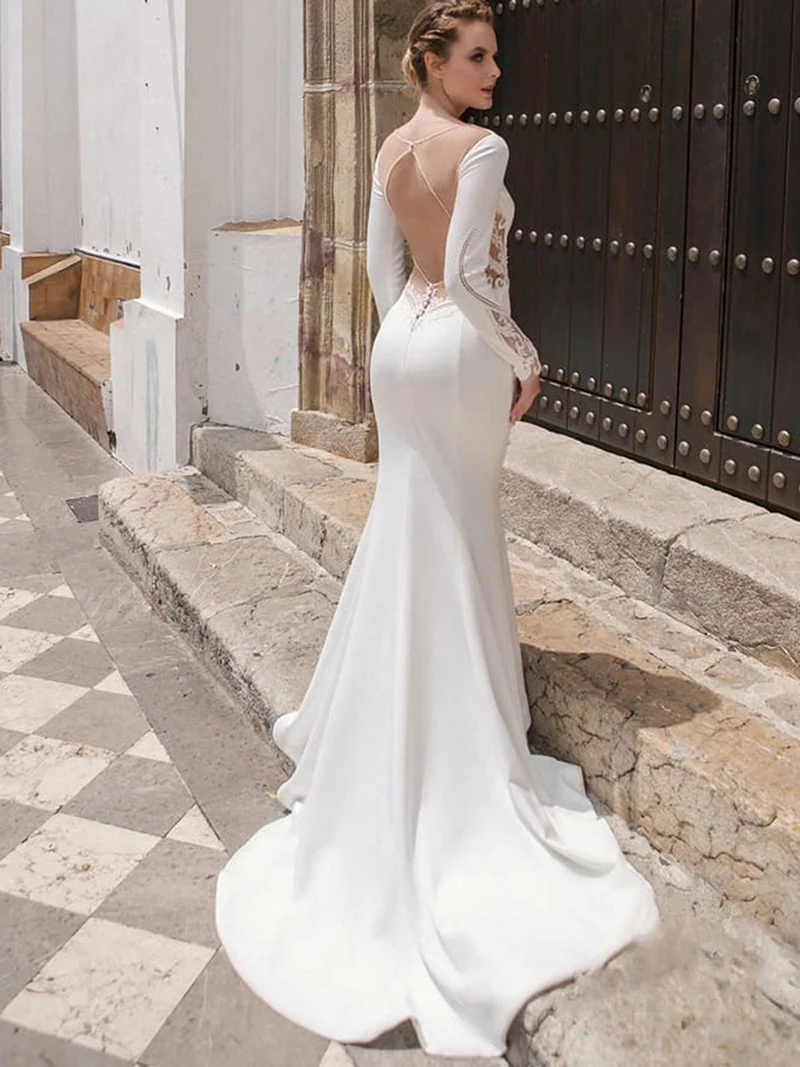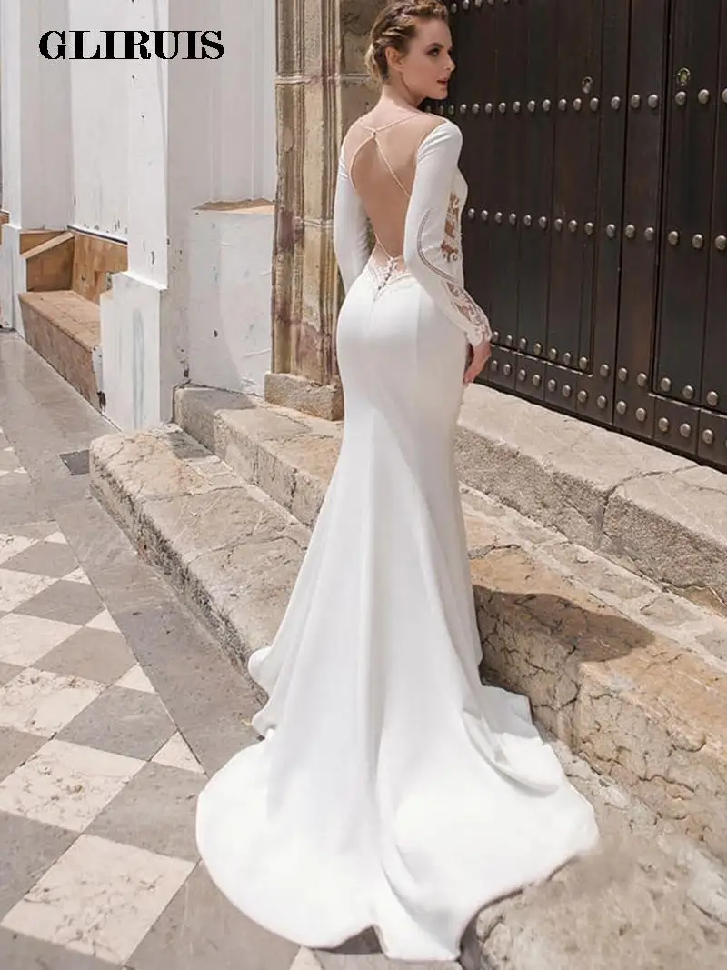 Женское свадебное платье с юбкой-годе, элегантное кружевное платье с аппликацией, жемчужинами, открытой спиной, длинным рукавом, в пол, пляжное платье невесты, 2021