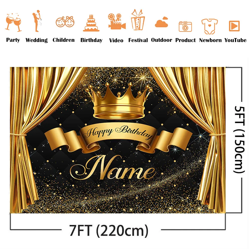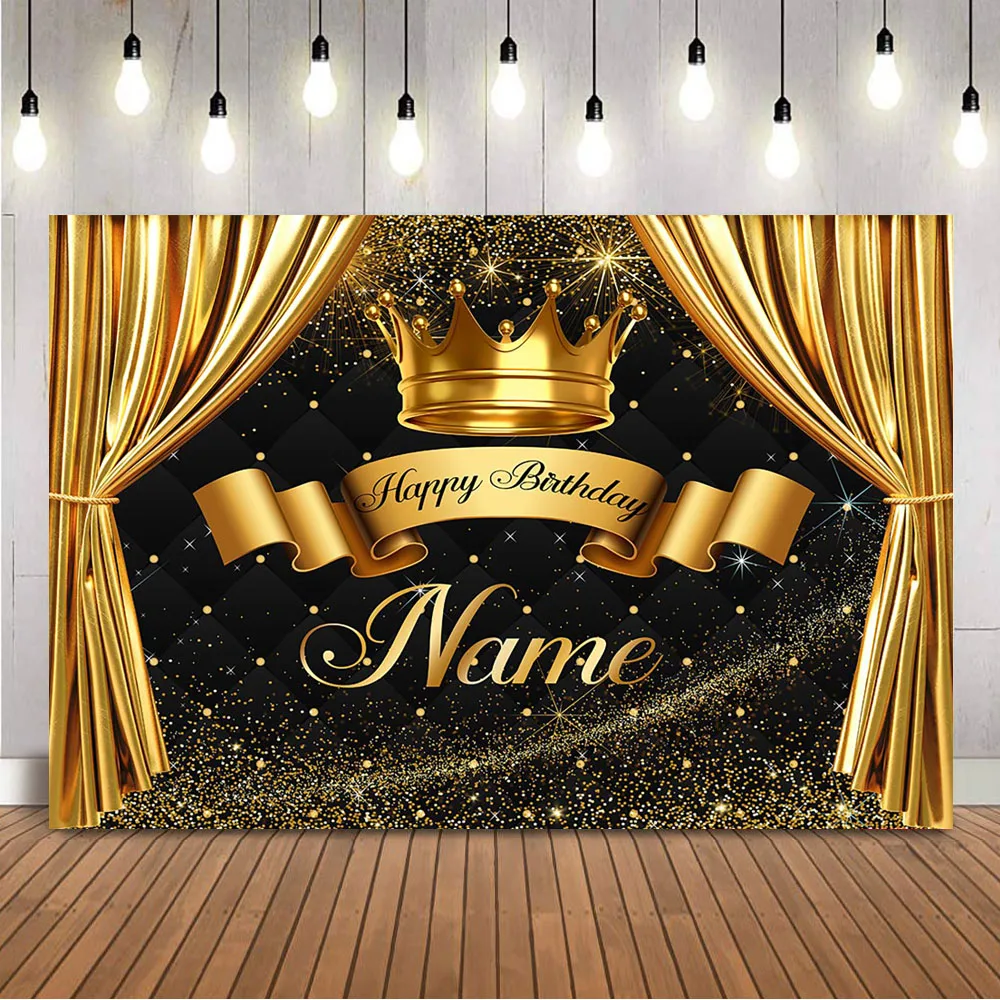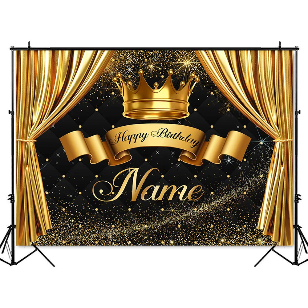 Принц Днем Рождения фон Золотая Корона черная curtrain фон для фото...
