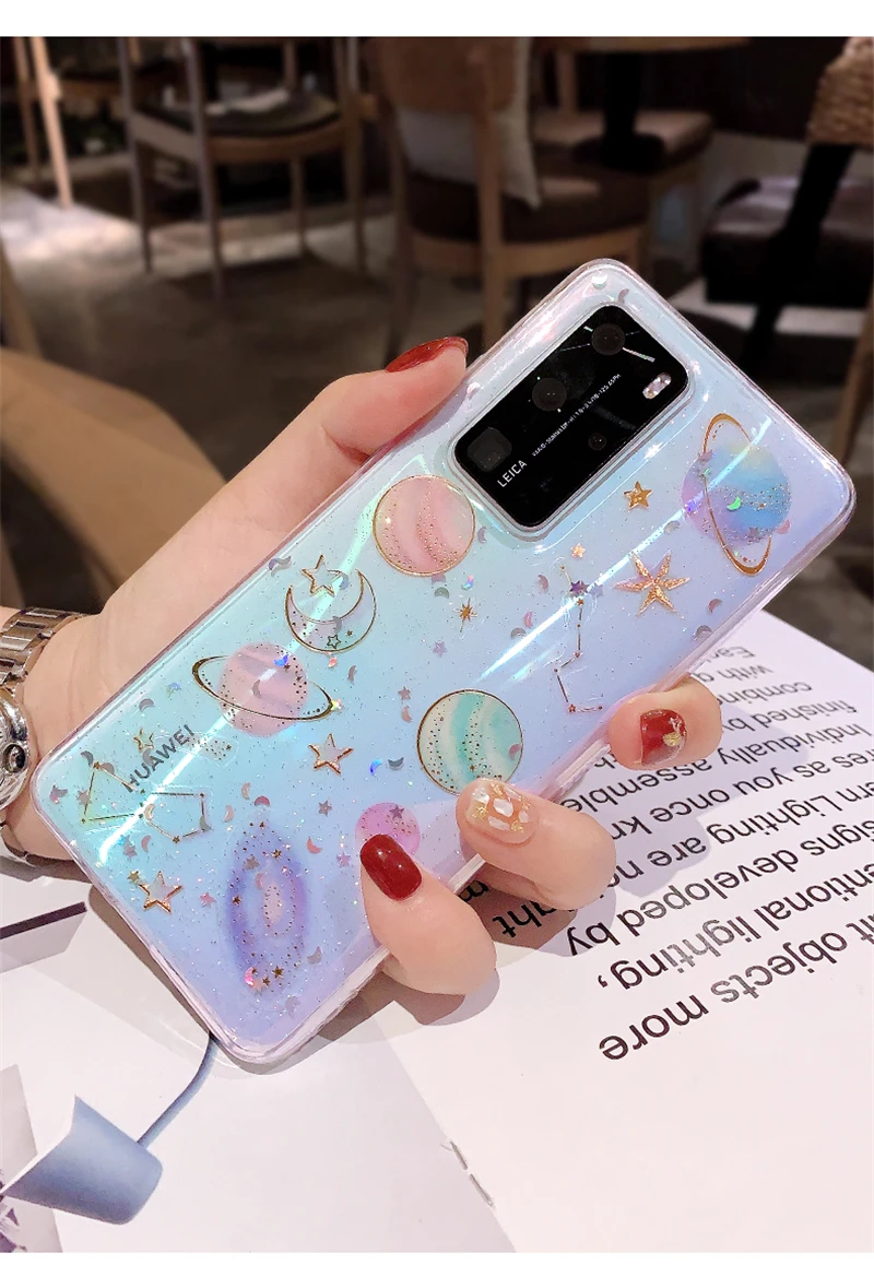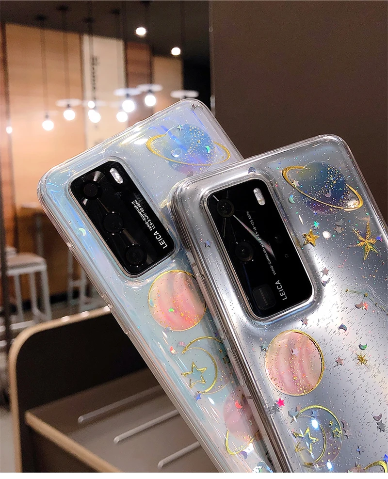 Чехол для Huawei P30 P40 P20 Lite, мягкий чехол с блестками, Вселен...