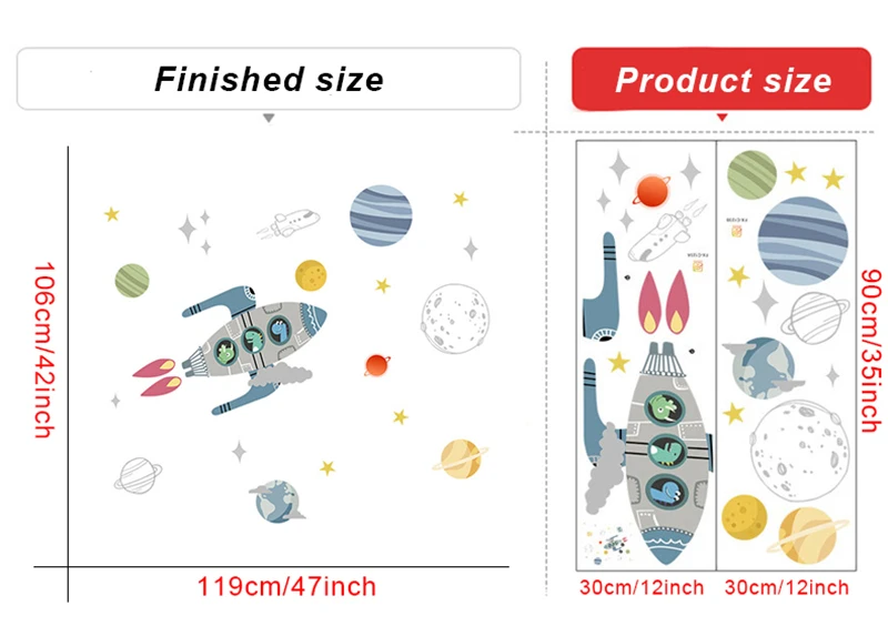 Мультяшные космические настенные наклейки в виде ракеты для детской комнаты, детской спальни, декоративные настенные наклейки из ПВХ, аксессуары для украшения дома