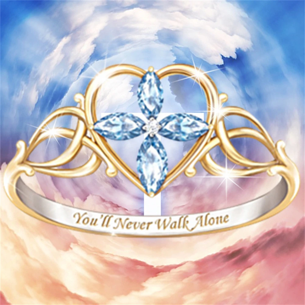 Изысканная Женская Мода Полые Лозы Горный Хрусталь Крест Кольца Романтические Женские Кольца Ювелирные Изделия Кольца Сердце Крест Кольца Благословения Женские Обручальные Кольца Юбилейные Подарки