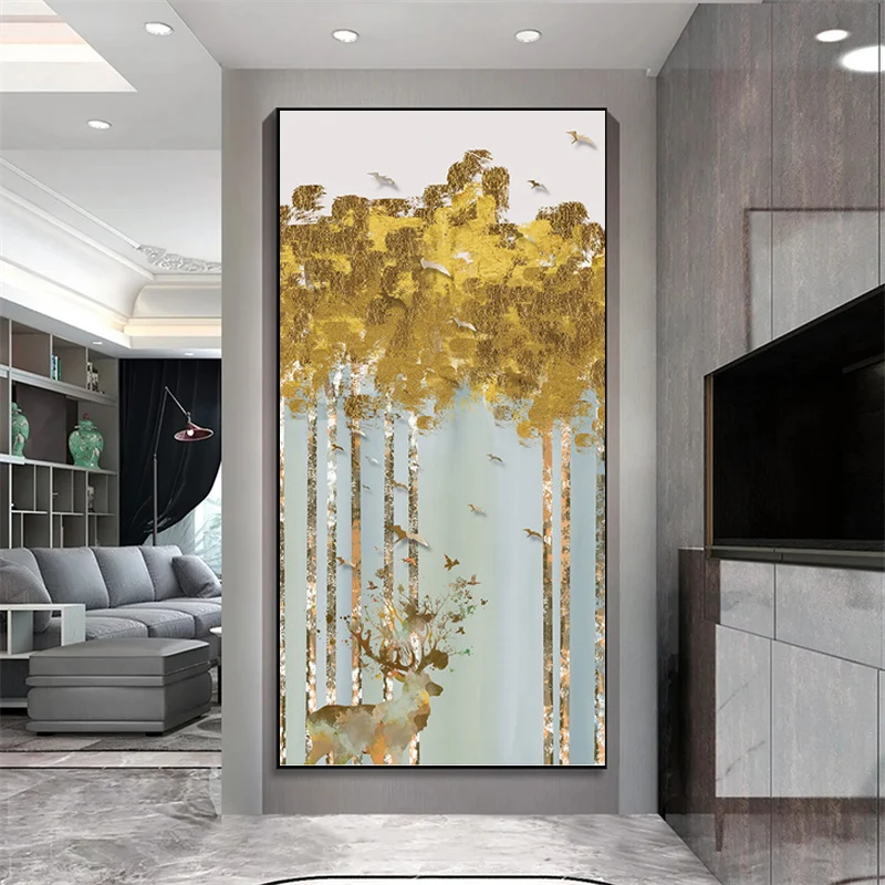 Настенная картина золотое дерево, винтажный абстрактный Настенный декор в скандинавском стиле, для гостиной