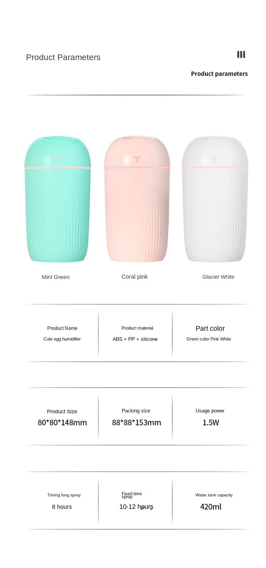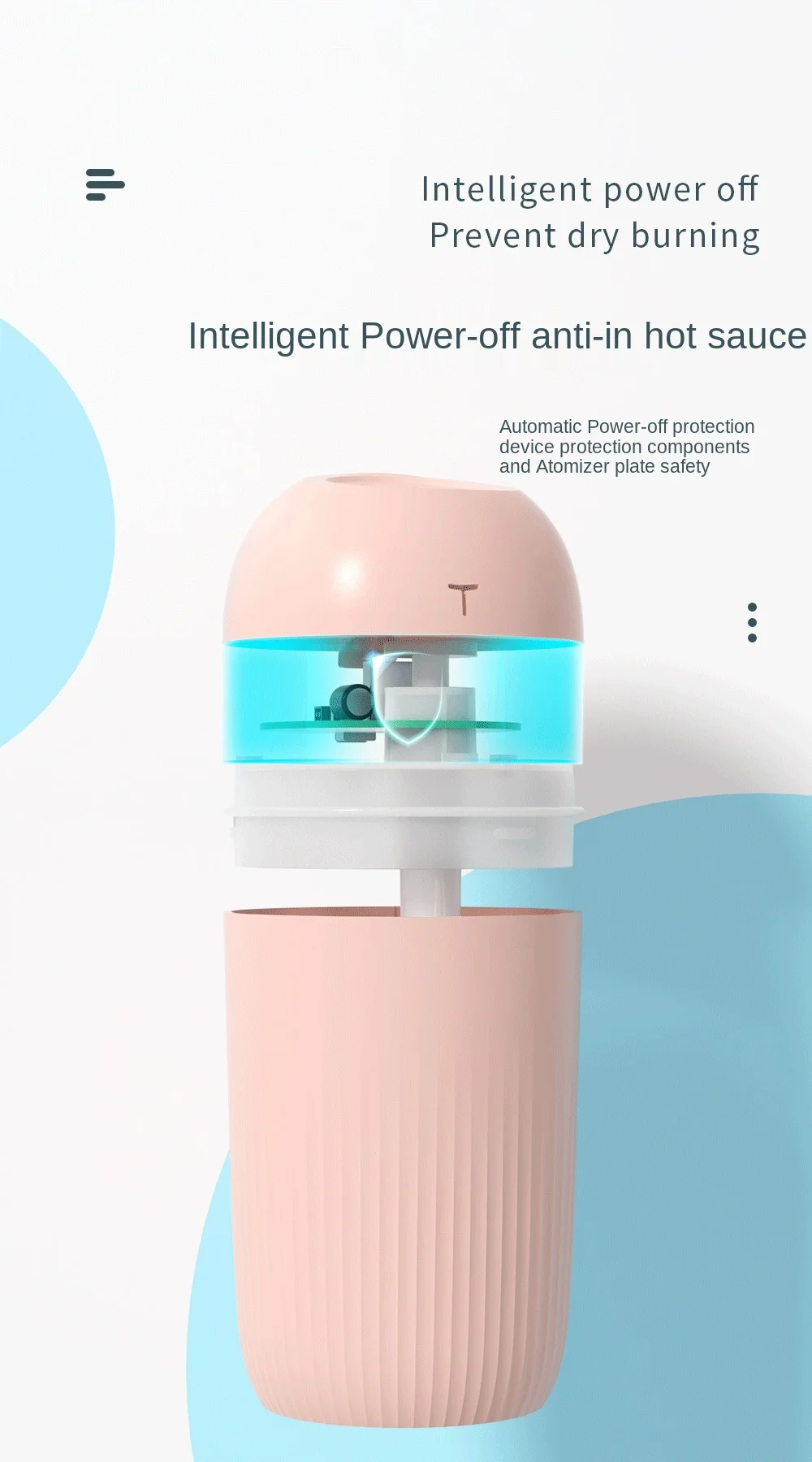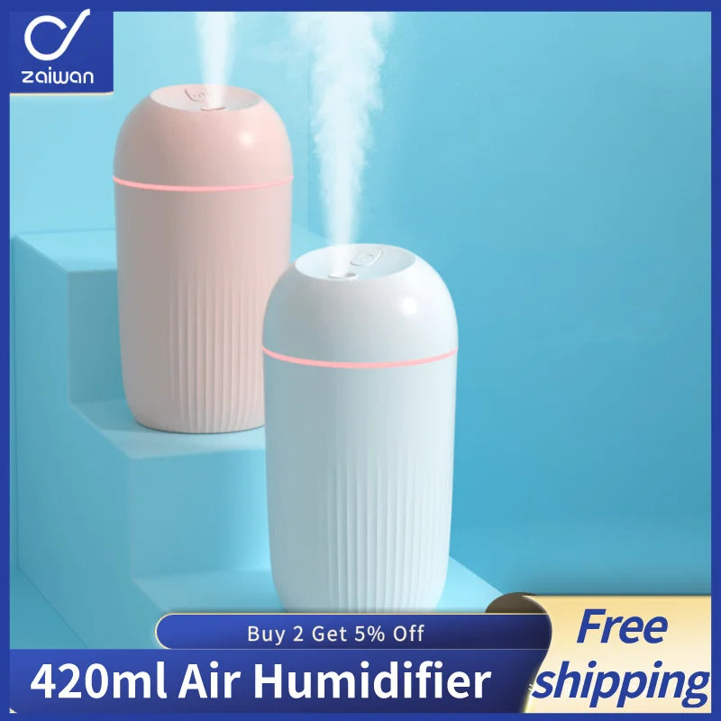 Автомобильный увлажнитель воздуха, 420 мл, USB, бесшумный увлажнитель воздуха, нежный светильник, аромадиффузор, непрерывныйпериодический спрей, может работать для автомобиля