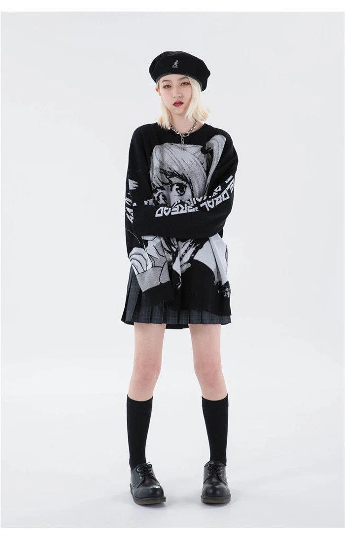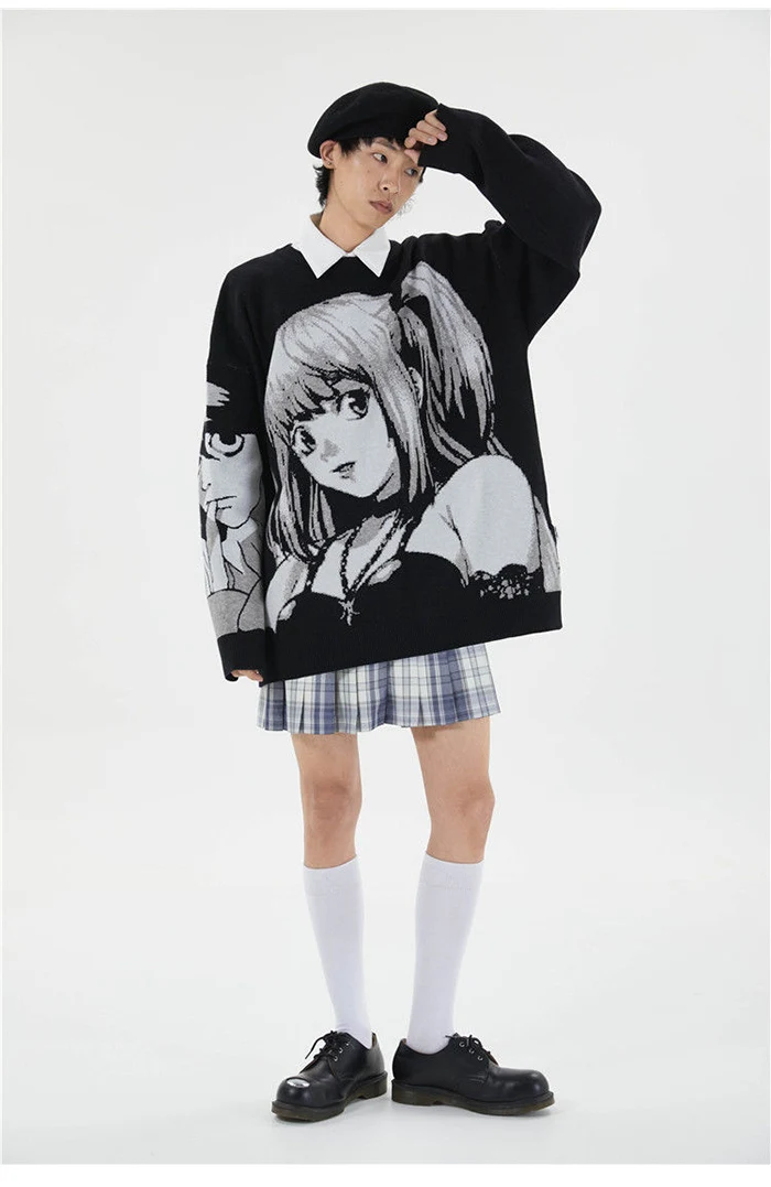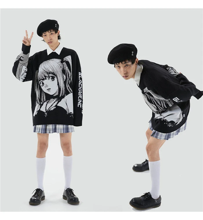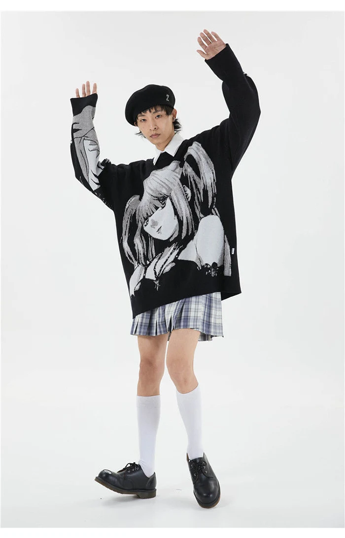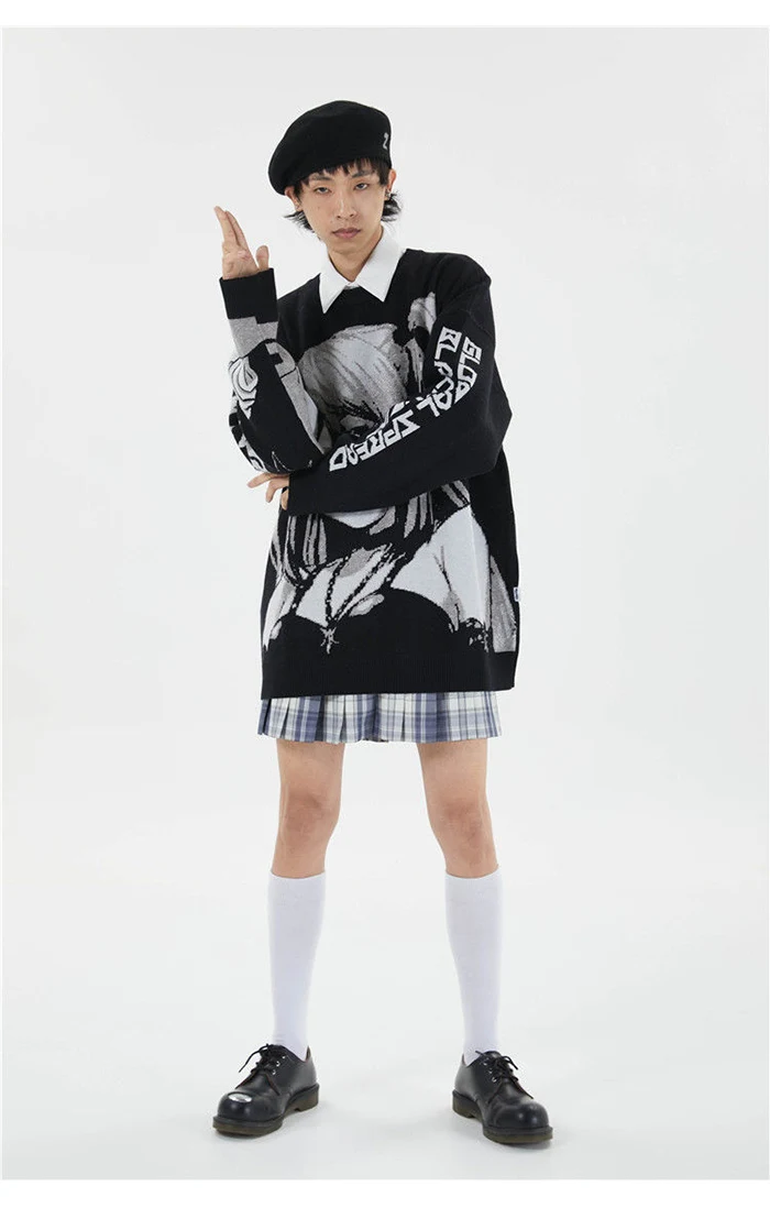 Свитер мужской оверсайз в стиле аниме, уличная одежда в стиле хип-хоп, вязаный свитер в винтажном стиле ретро, пуловер в японском стиле Харадзюку, осень 2021