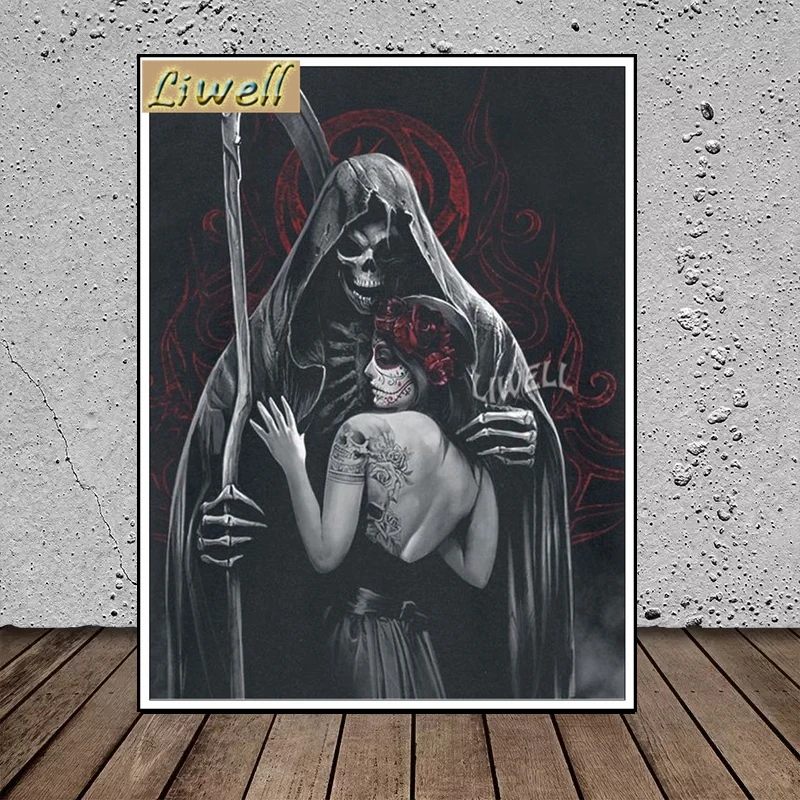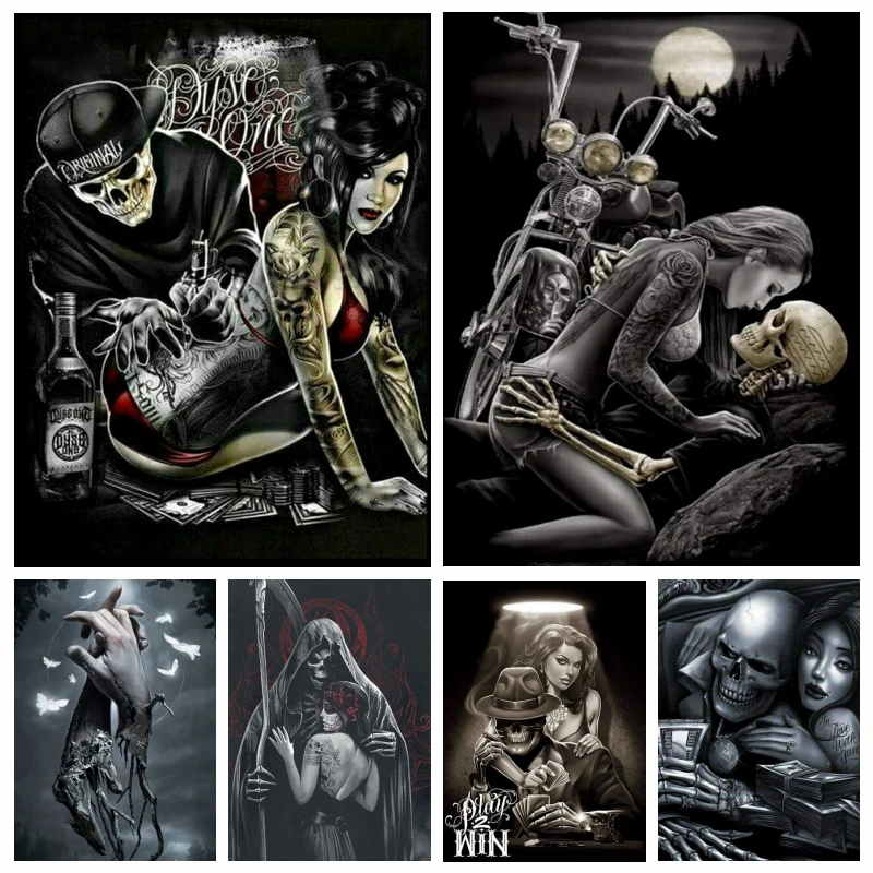 5d алмазная вышивка Череп Призрак Райдер Искусство Живопись полная ...
