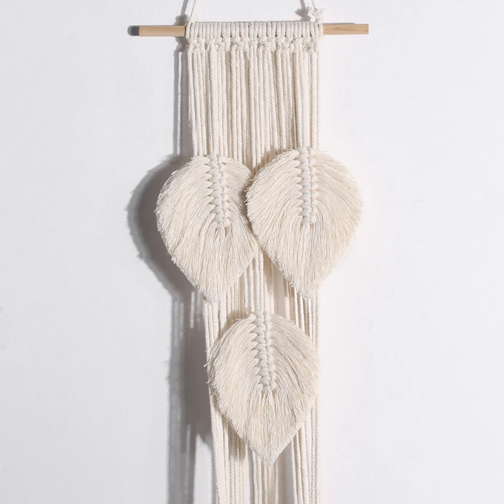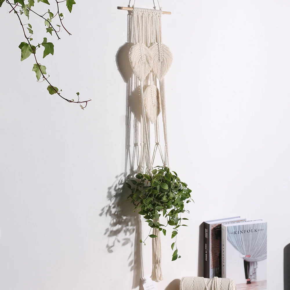 Подвеска для растений из макраме комнатная подвесная посадочная корзина с деревянным украшением в виде листьев, держатель для цветочного горшка с кисточками для бохо, для дома и улицы