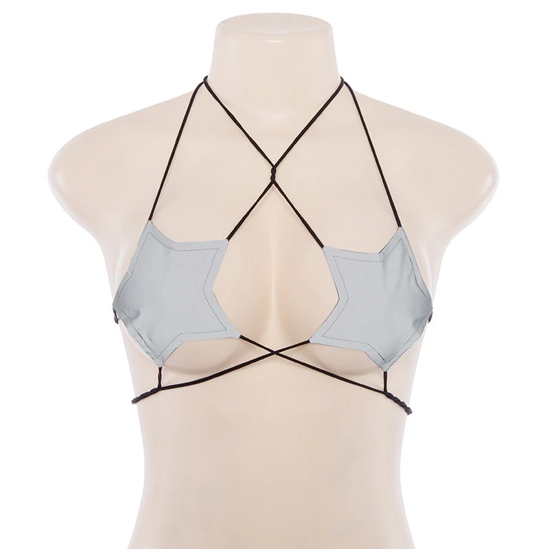 Женский сексуальный блестящий светоотражающий бюстгальтер со звезда...