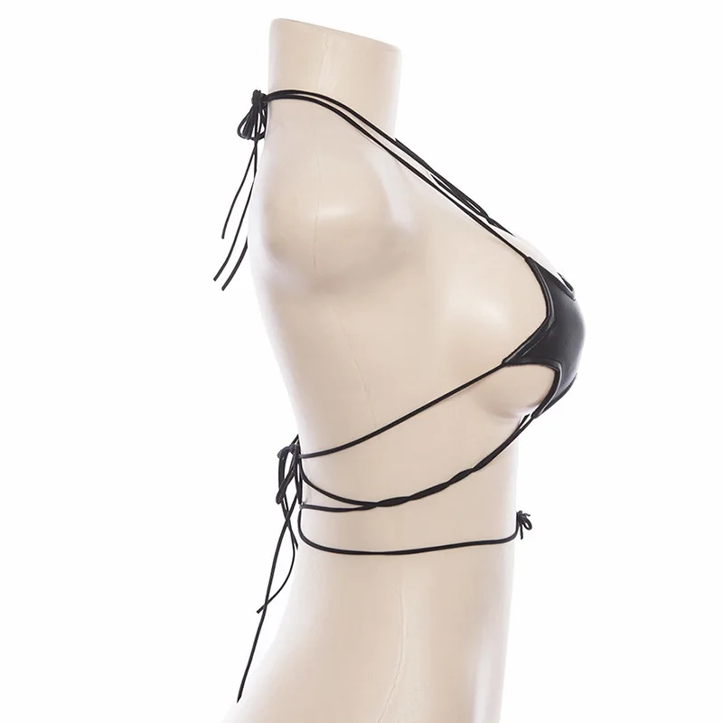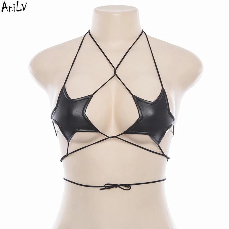 Женский пляжный костюм бикини AniLV из черной кожи со звездами, флуоресцентный топ с перекрестными лямками, бюстгальтер, пижама, нижнее белье для косплея