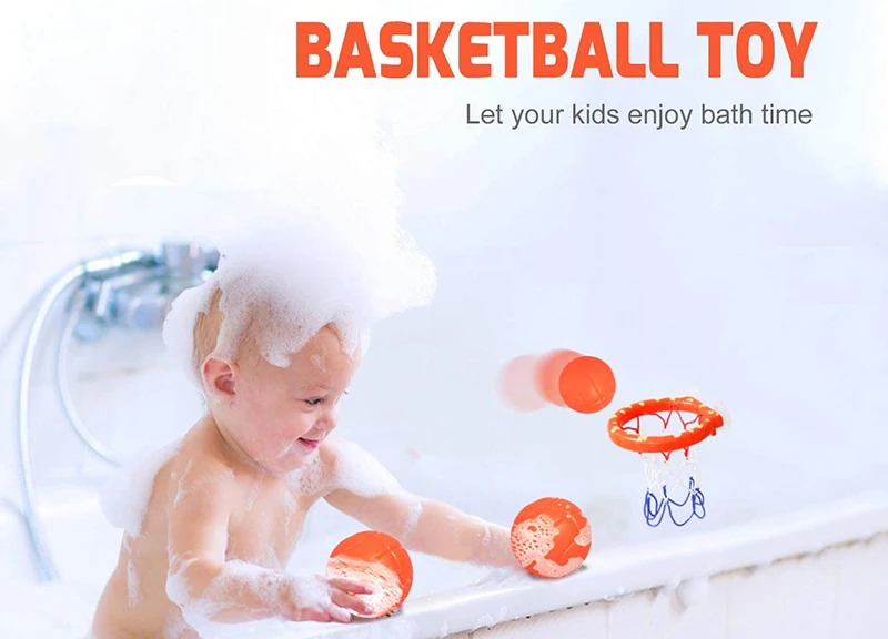 Детские Игрушки для ванны, детская корзина для стрельбы, набор для водных игр для маленьких девочек и мальчиков с 3 мини пластиковыми баскетбольными мячиками, Забавный душ