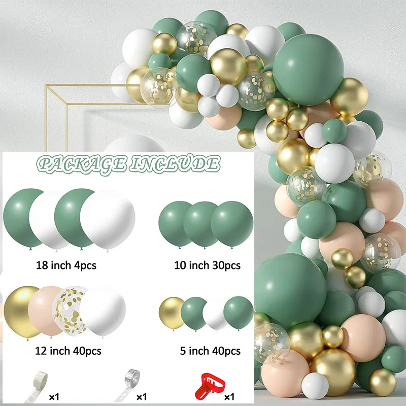 Зеленые Белые воздушные шары, макарон, металлические воздушные шары...